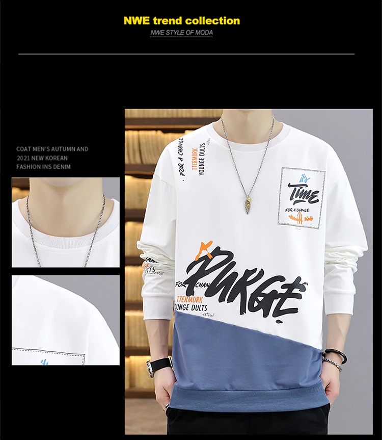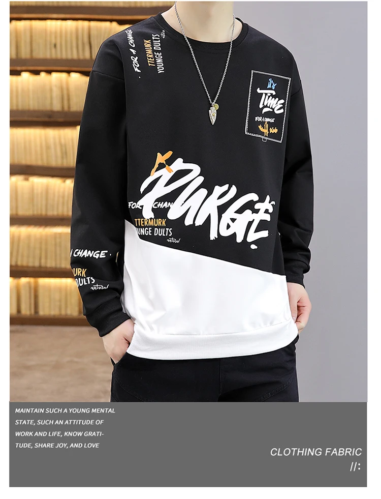 Hip Hop Sweatshirt Men Fashion Clothing Casual Hoodie No Hood Patchwork Japan Style Harajuku Sweatshirt Tops Pullovers