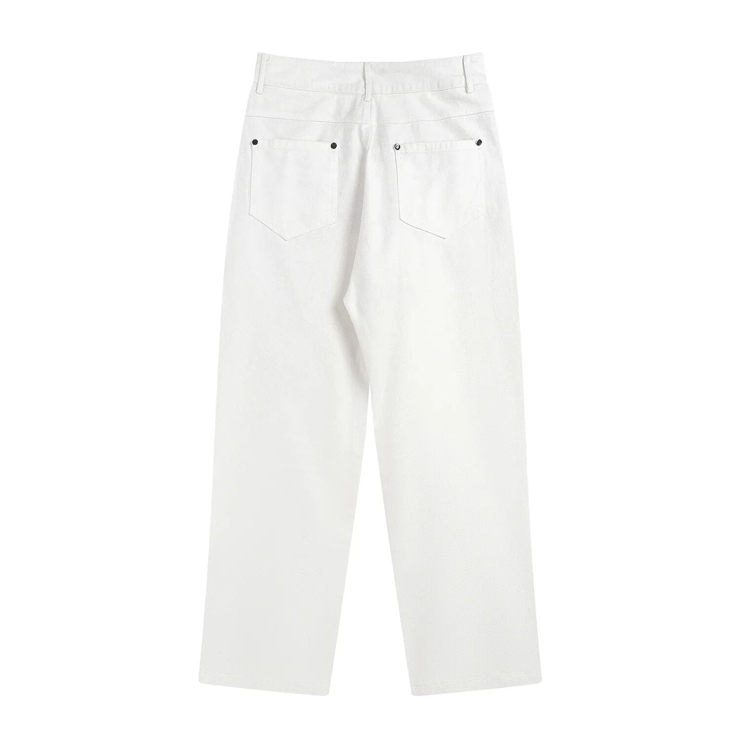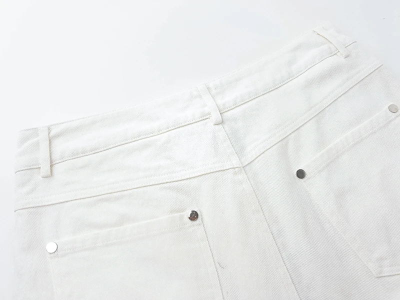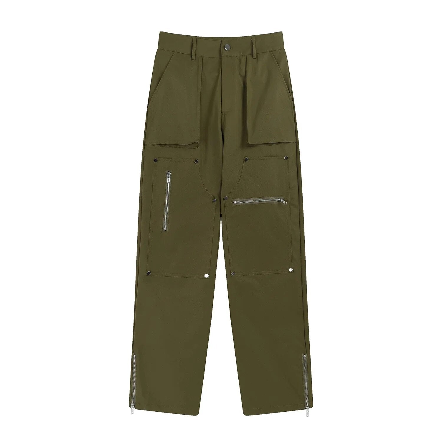 Hip Hop Vibe Heavy Functional Cargo Trousers for Men Fashionable Rivets Zipper Split Adjust Micro Flare Pants White Male Clothes