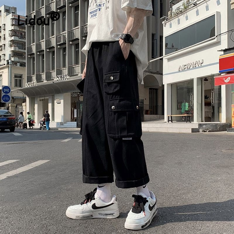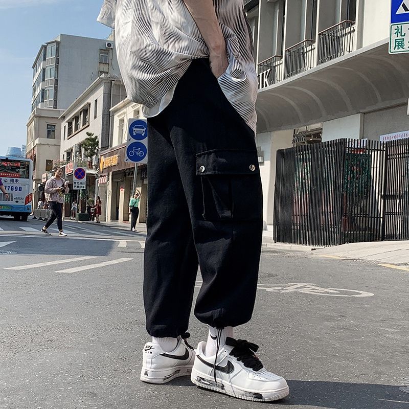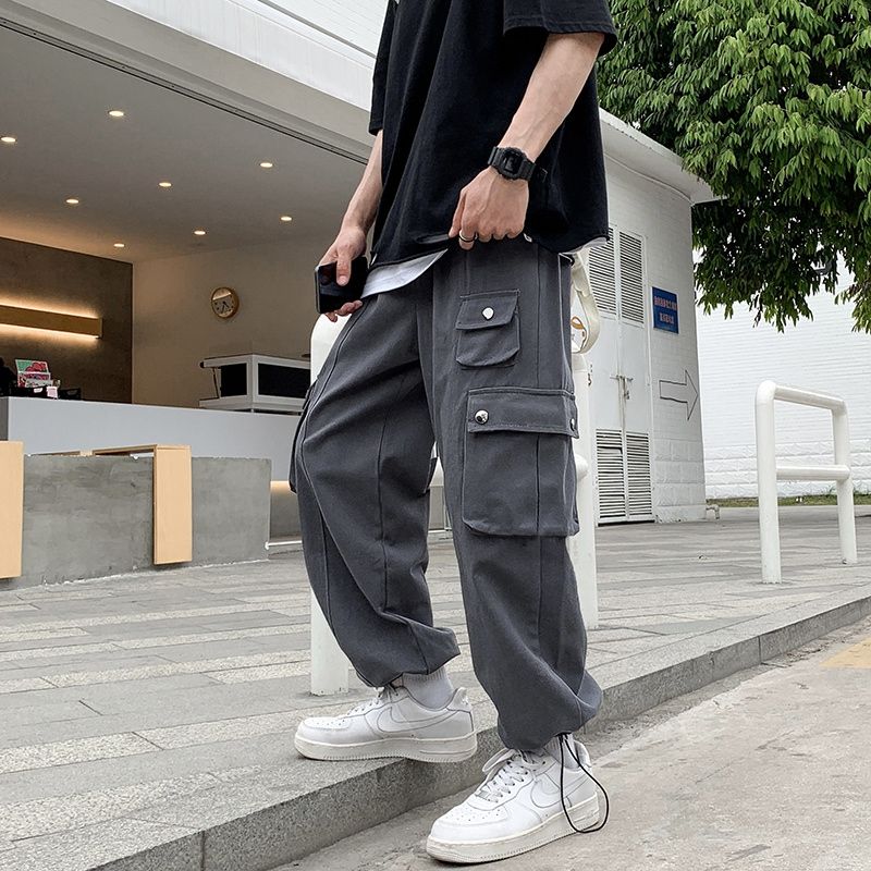 Hong Kong Breeze Bomb the Street Multiple Pockets Male Cargo Pants New Classic Loose Straight Cylinder Casual Man Trousers