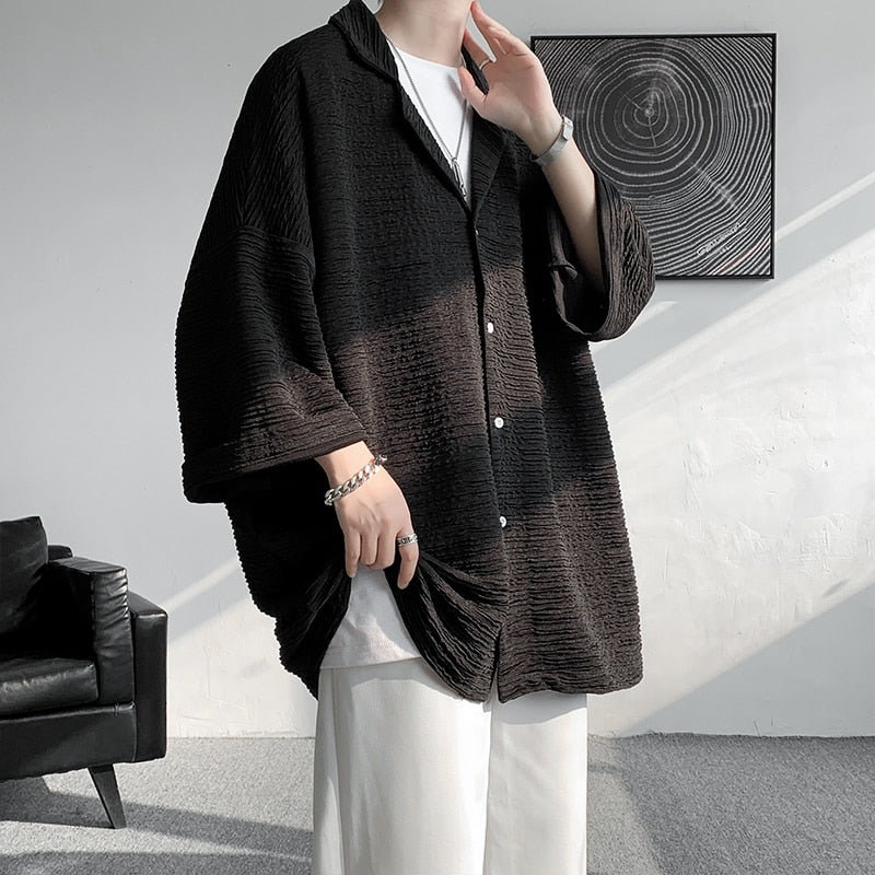 Ice Silk Shirt Men's High Quality Summer Fashion Brand ins 5-sleeve shirt loose casual masculina