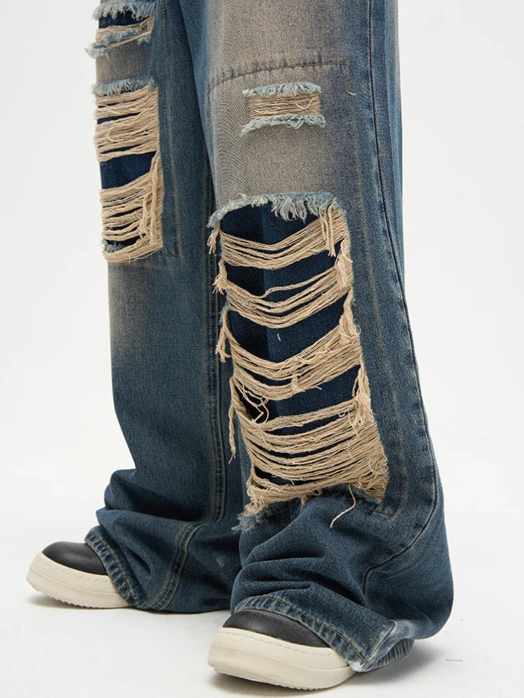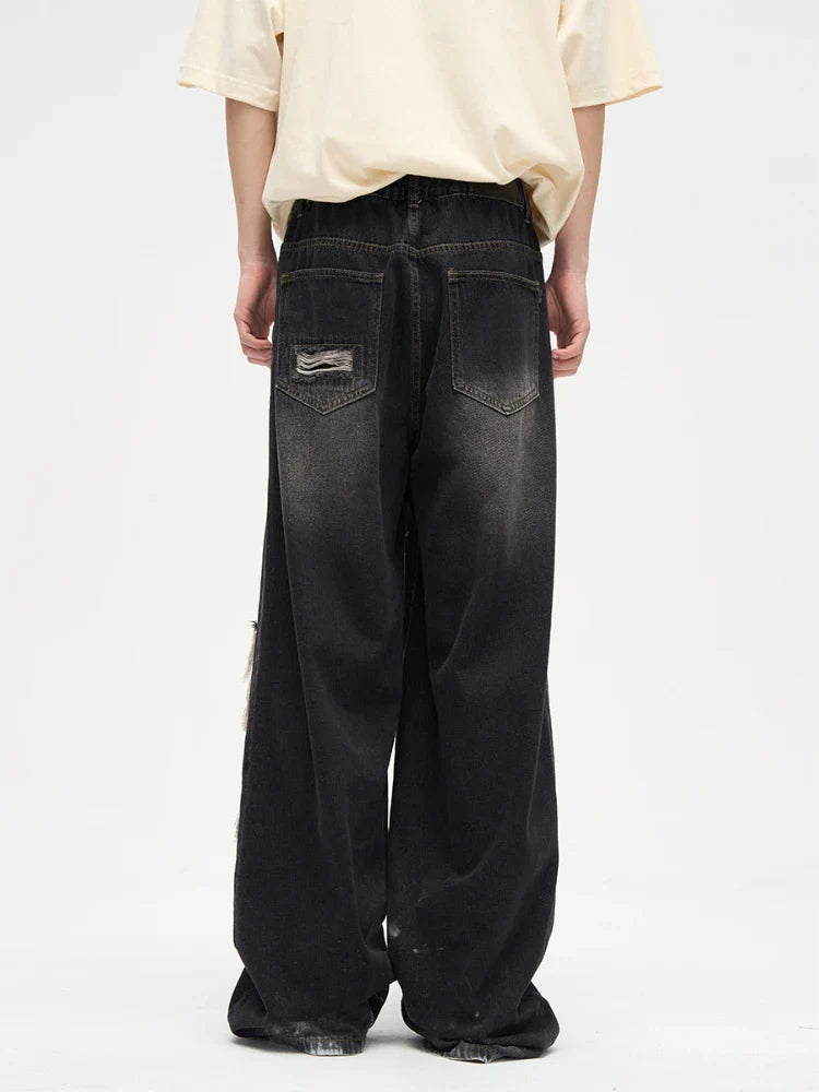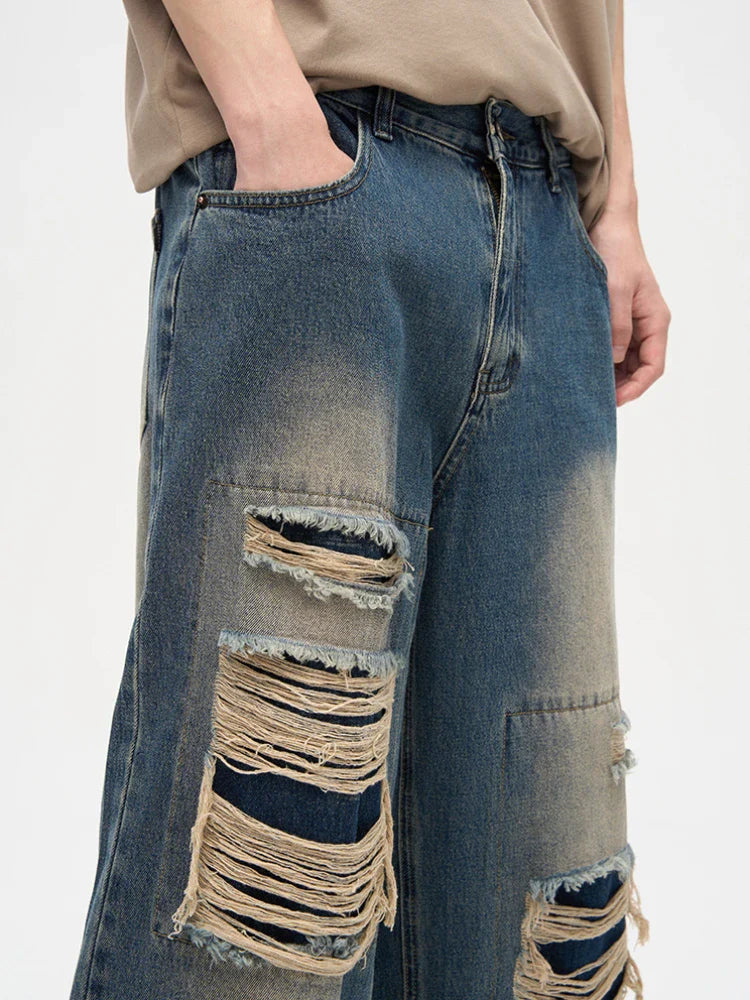 Jeans for Men Casual Straight Loose Summer Daily Hole Solid Color High Street Denim Trousers Breathable Trendy All-match Unisex