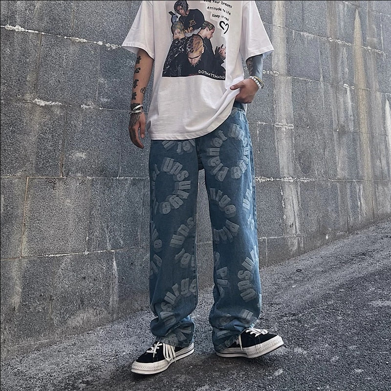 Jeans For Men Loose Casual Pants Streetwear Jeans Black Jeans Printed Jeans High Jeans Pants Graffiti White Denim Jeans Mens