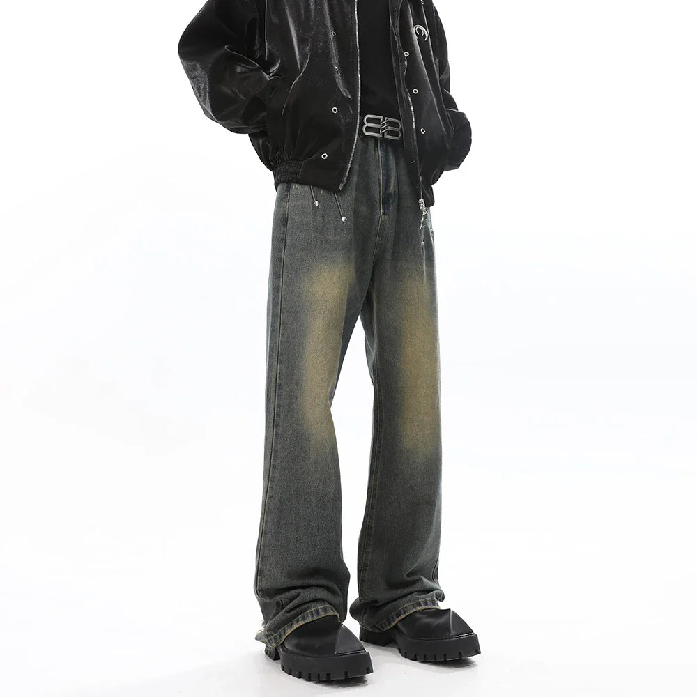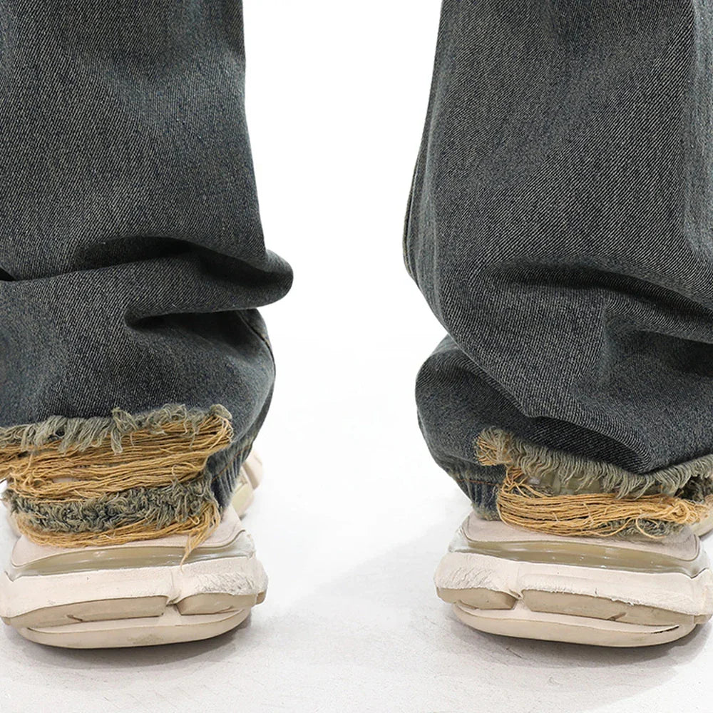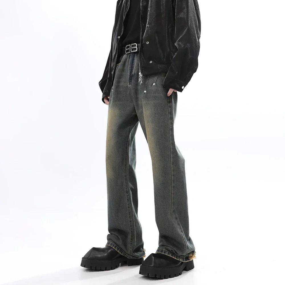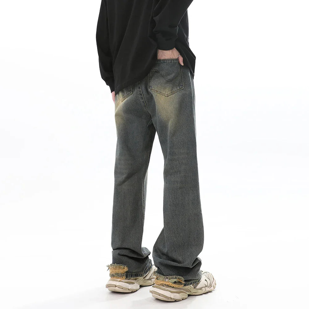 Jeans for Men Vintage Baggy Flare Trousers Autumn Casual Fashion Street Distressed Winter Wide Leg Streetwear Y2k Denim Pants