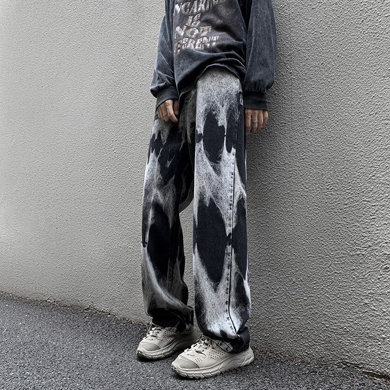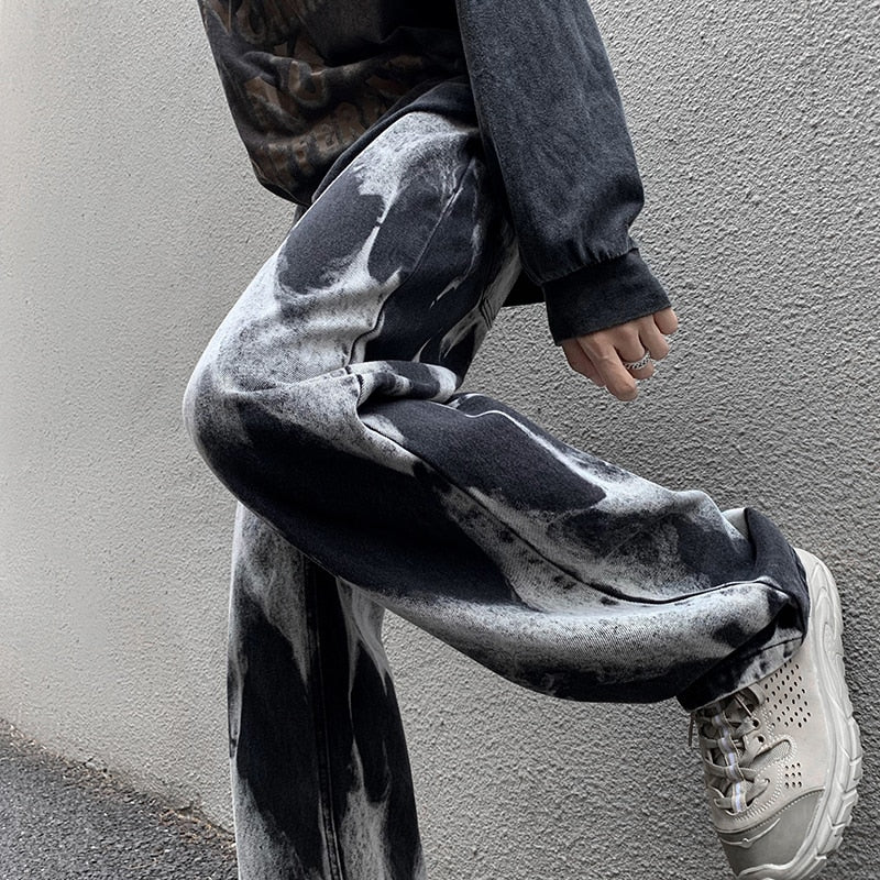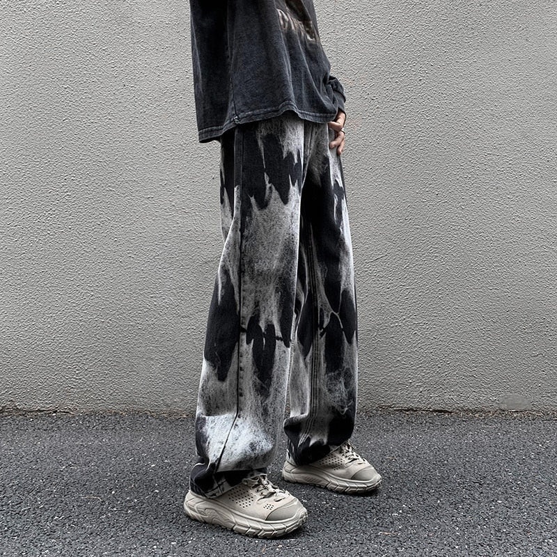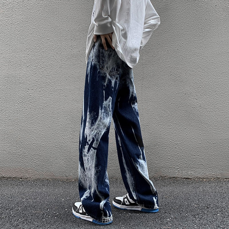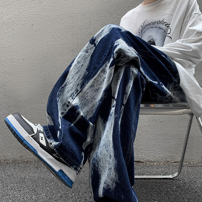 Jeans men Tie-dye Jeans High Street Straight Denim Pants Men Baggy Fashion Trend Jean Pants Mens Wide-leg BF Clothing