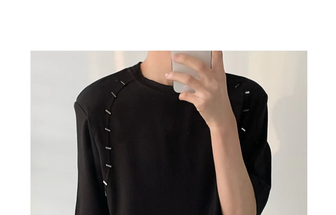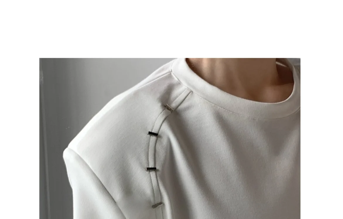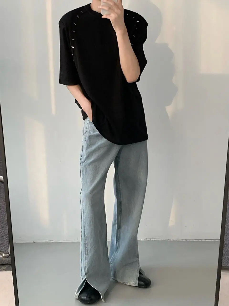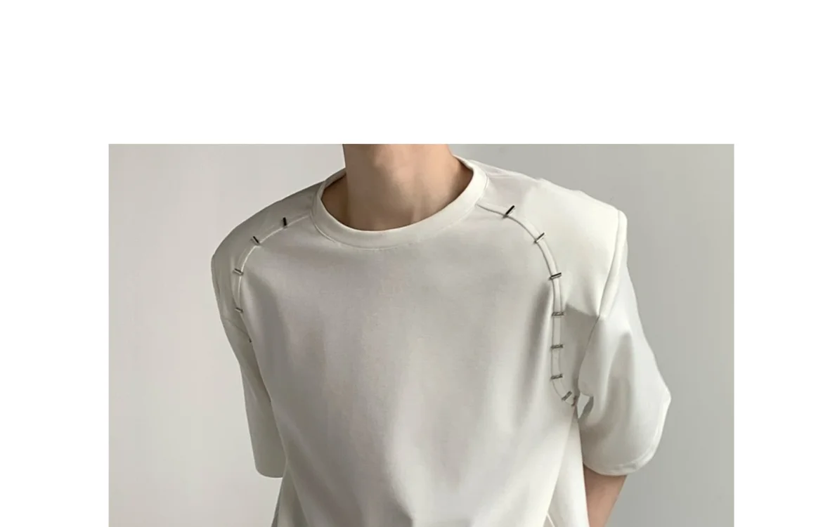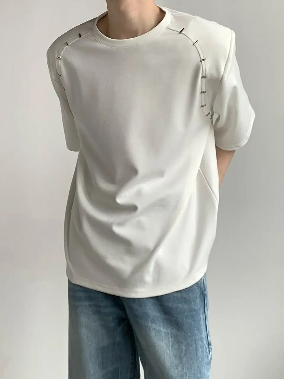 Korean Style Heavy Shoulder Pad Short Sleeve T Shirt Men Metal Niche Design Loose Casual Harajuku Solid Color Bottoming Shirt