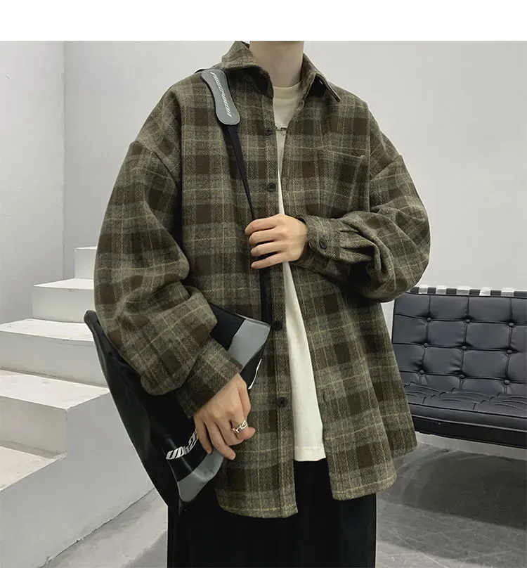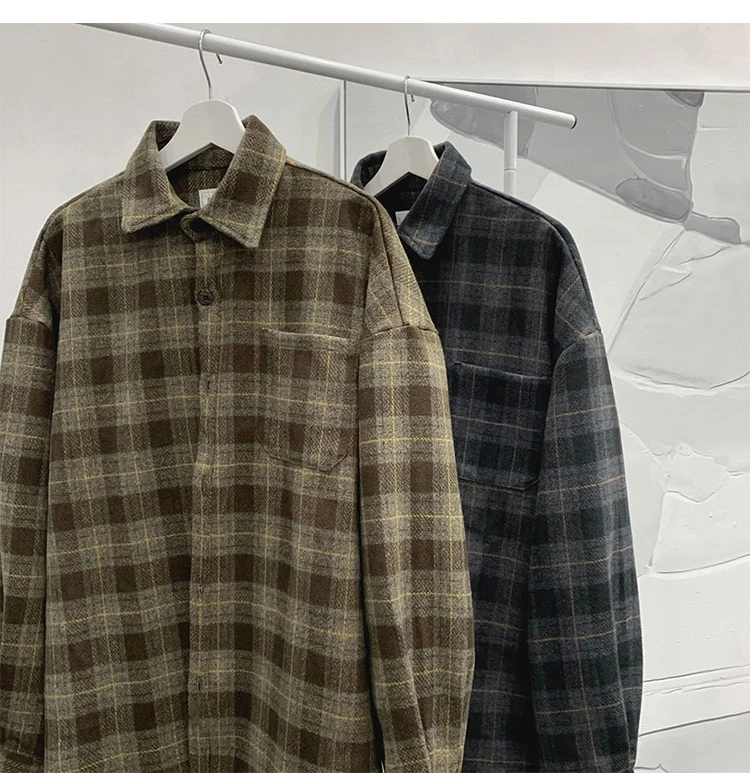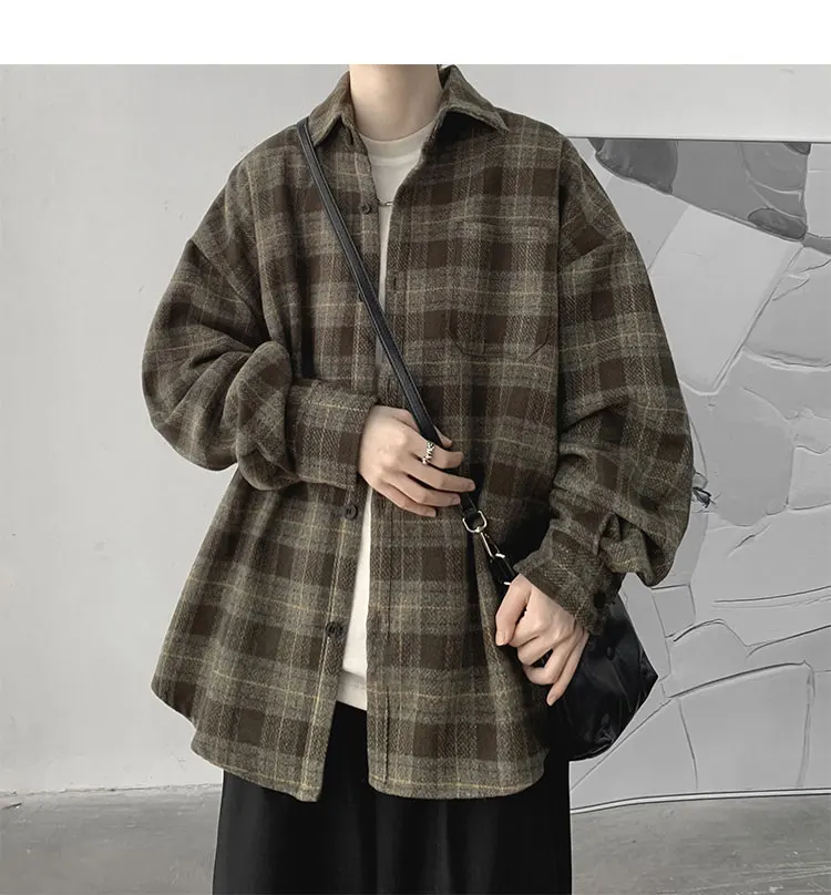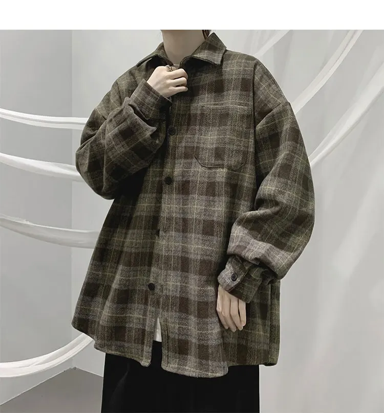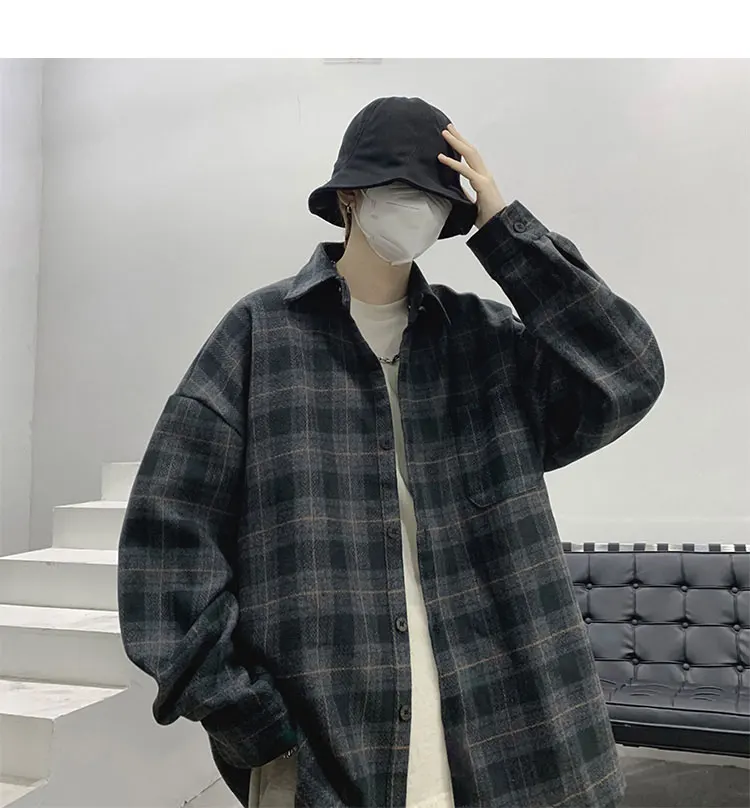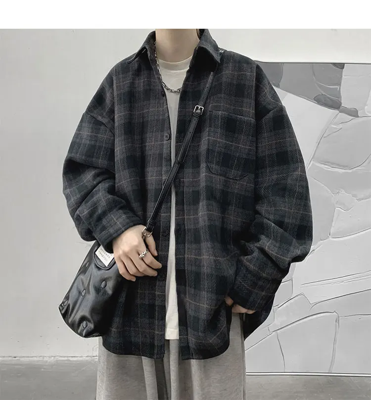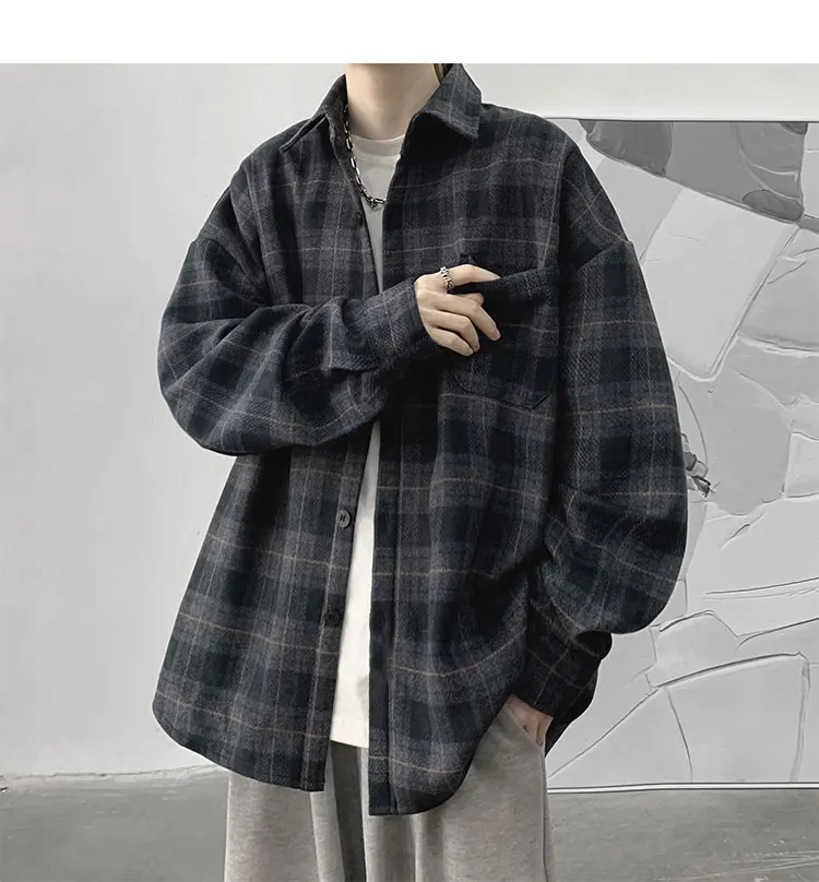 Flannel Harajuku Checked Plaid Shirt Long Sleeve Winter Y2k Streetwear Fleece Shirts Vintage Korean Fashions Clothes
