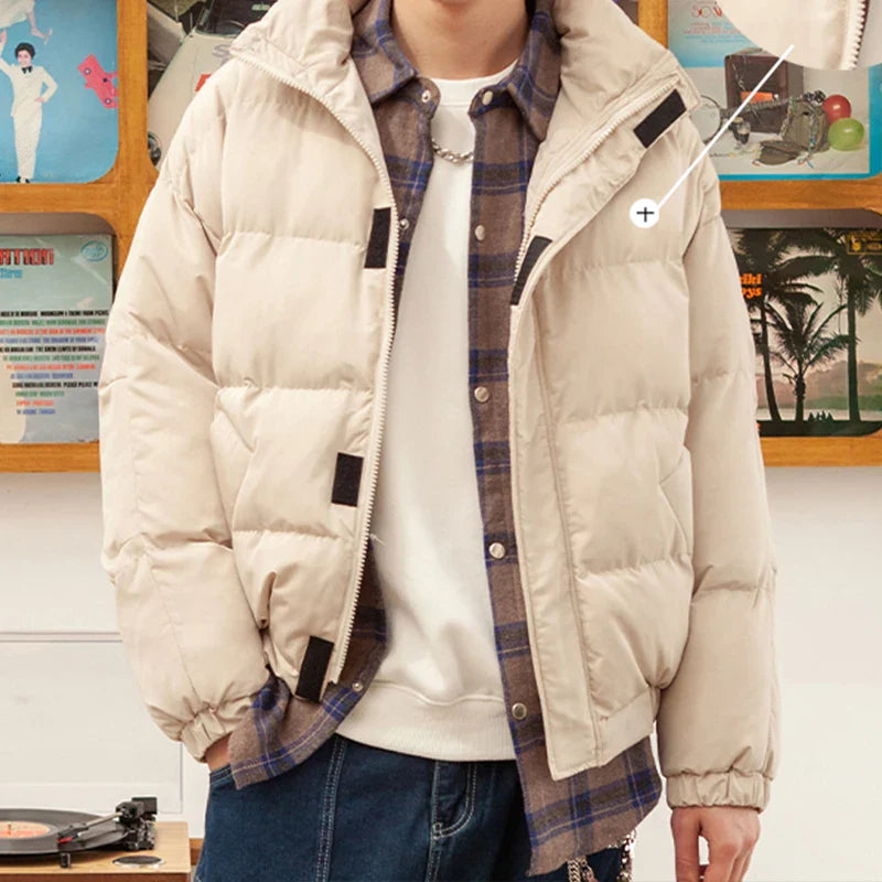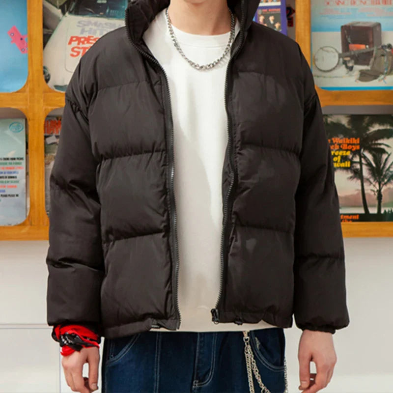 Men Harajuku Warm Bubble Coat Winter Jacket Streetwear Solid Black Parkas Man Korean Fashion Puffer Jackets Coats