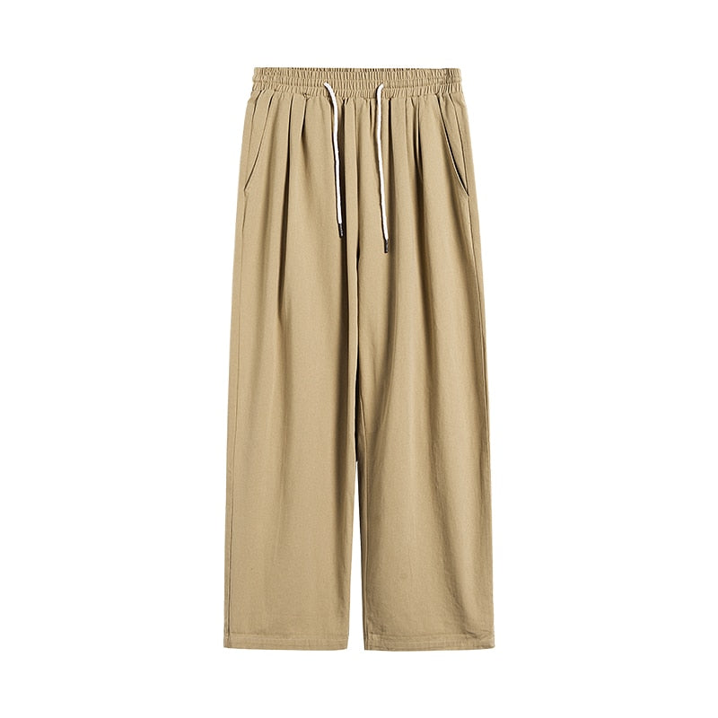 Legible Women Pant Casual Cotton Wide Leg Pants Retro Ankle Length Elastic Waist Loose Trousers Female