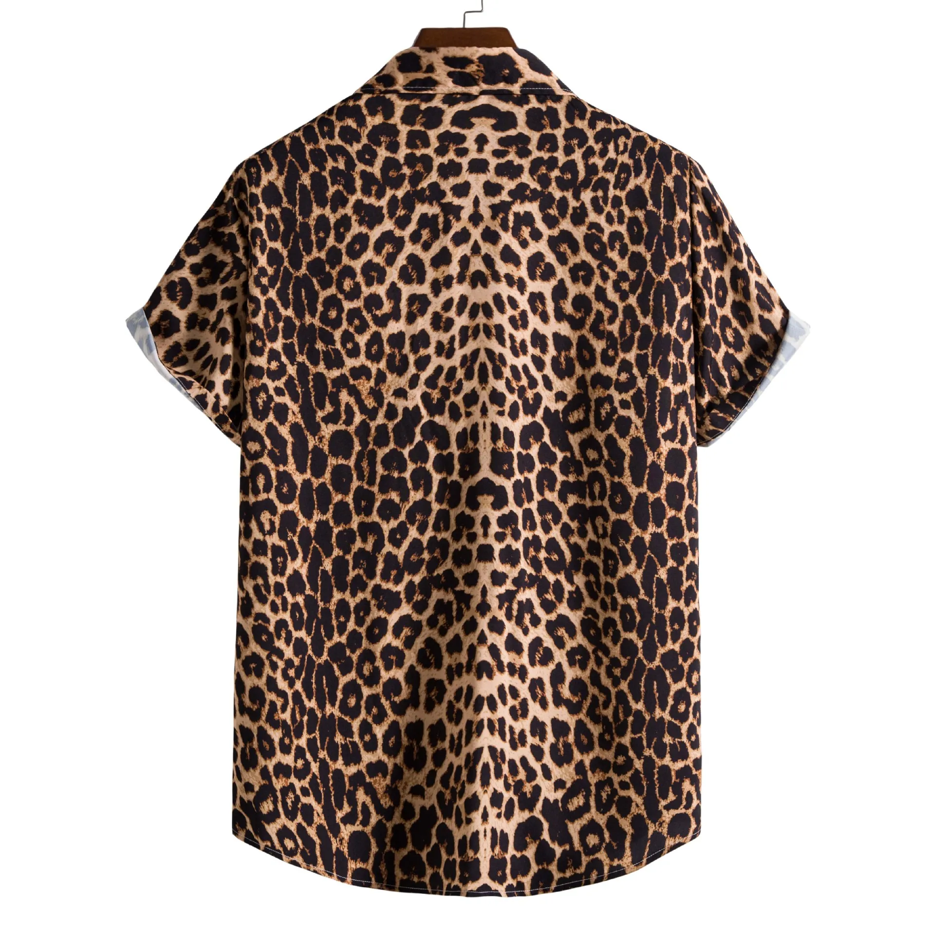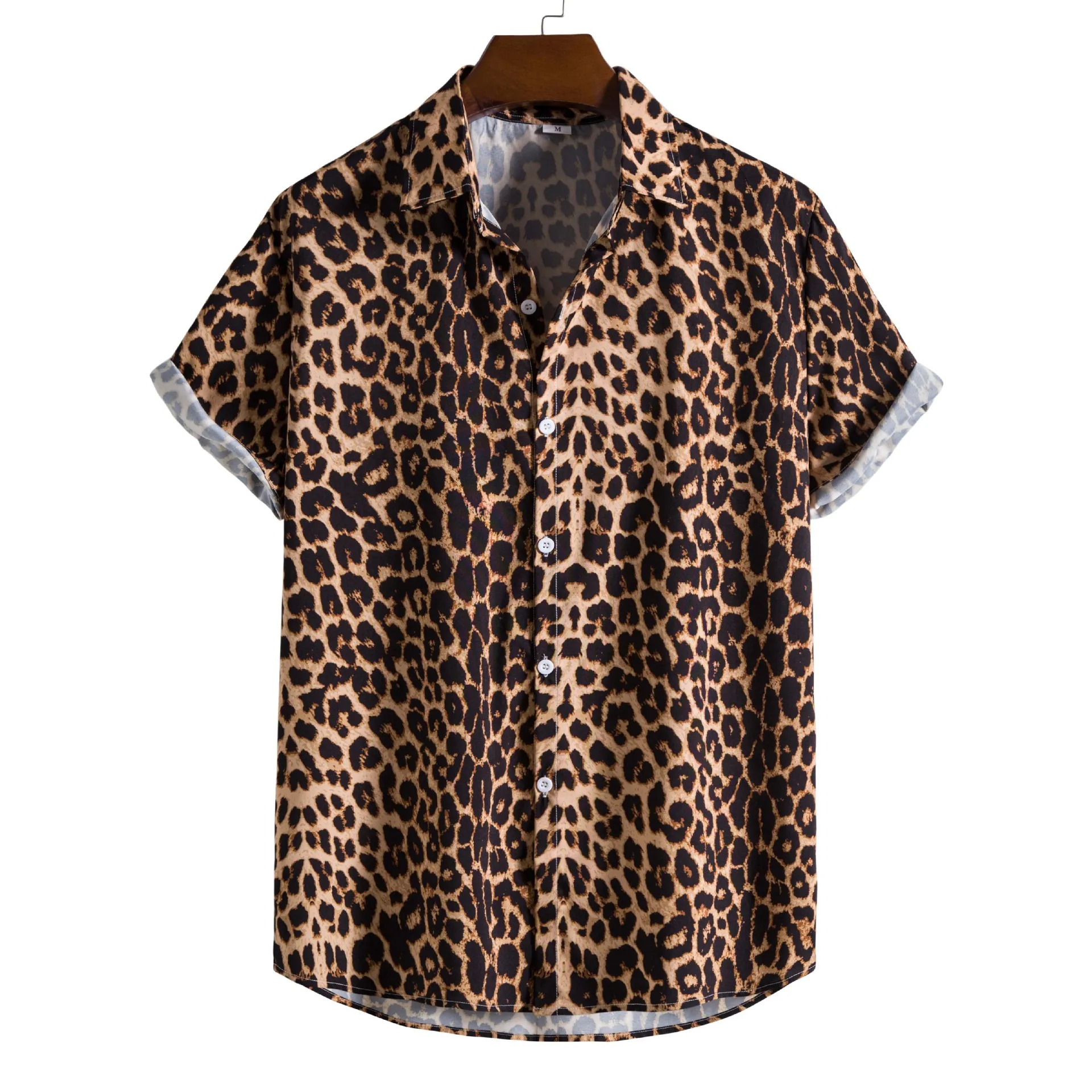 Leopard Floral Shirt Men Camisa Masculina Brand Slim Fit Short Sleeve Hawaiian Shirt Men Party Beach Casual Shirts Male 5XL