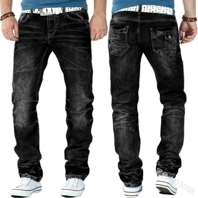Men's Fashion Jeans Ripped Jeans Slim Fit Denim Pleated Jeans Male Straight Retro Tide Pants Jeans for Men