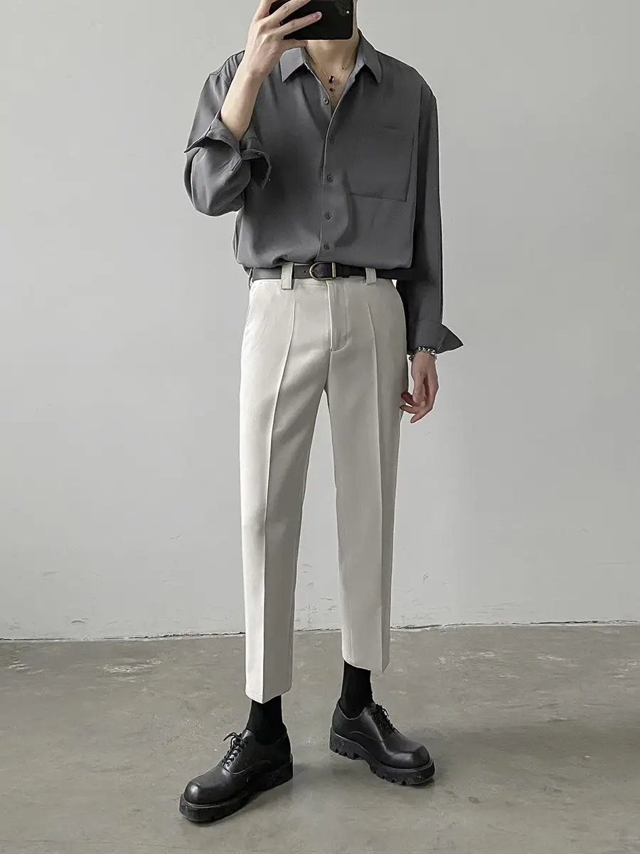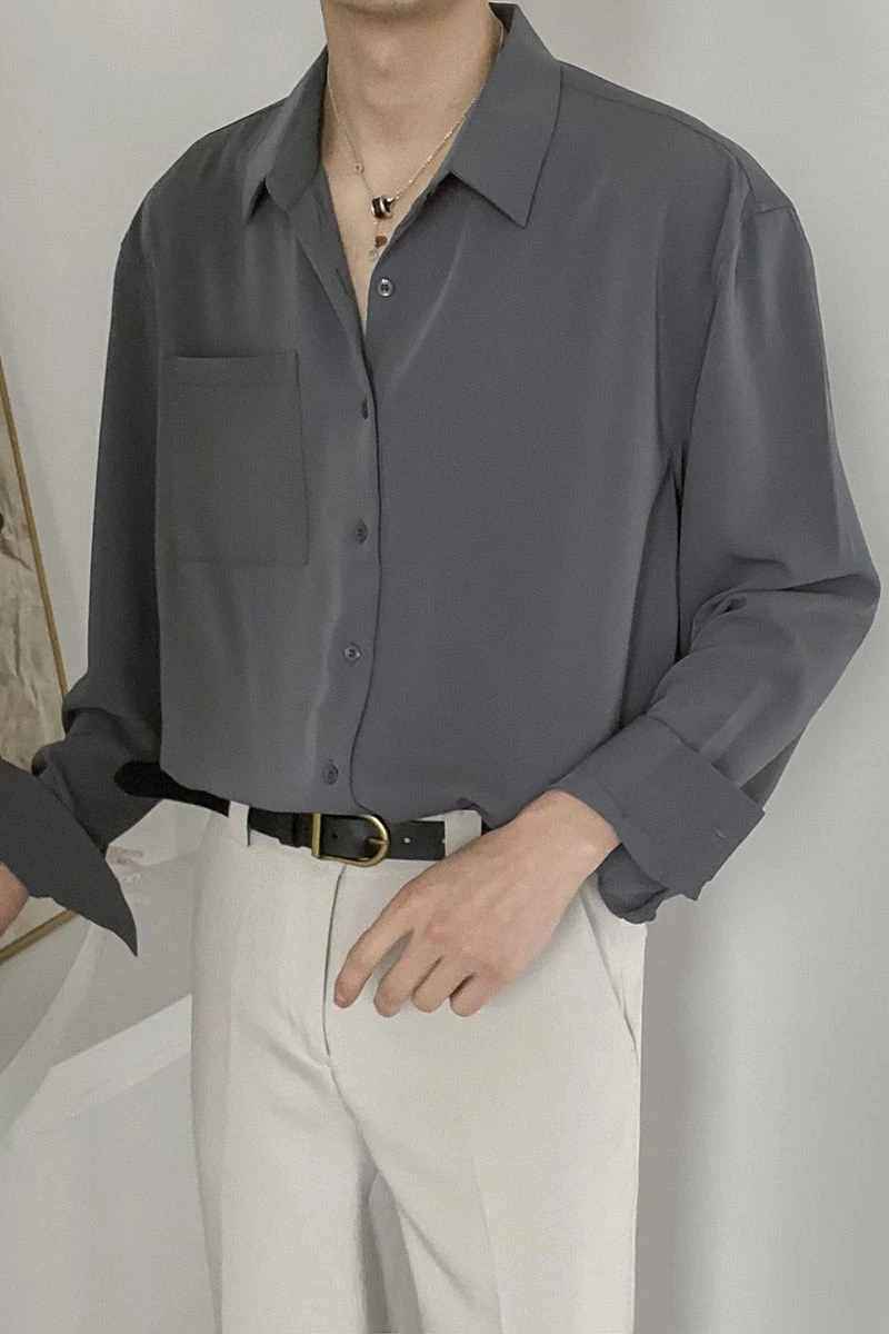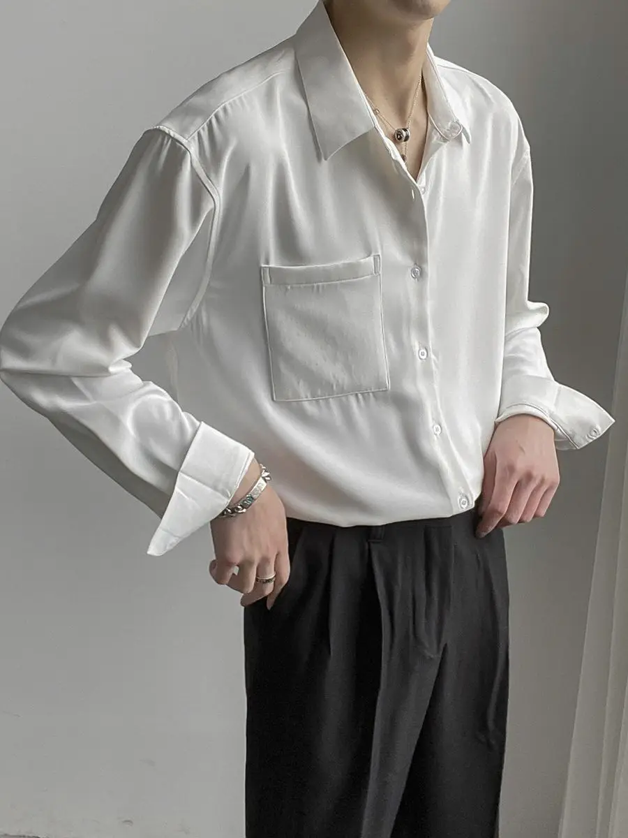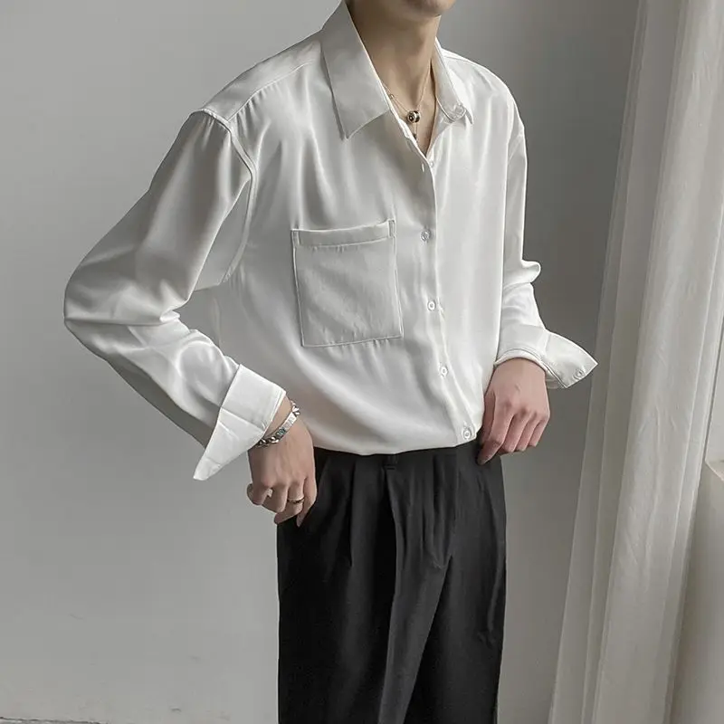 Mature Luxury Korean Clothes Loose Casual Long Sleeve Shirts for Men Spring Trend Ice Silk Drape Mens Shirts Top Quality