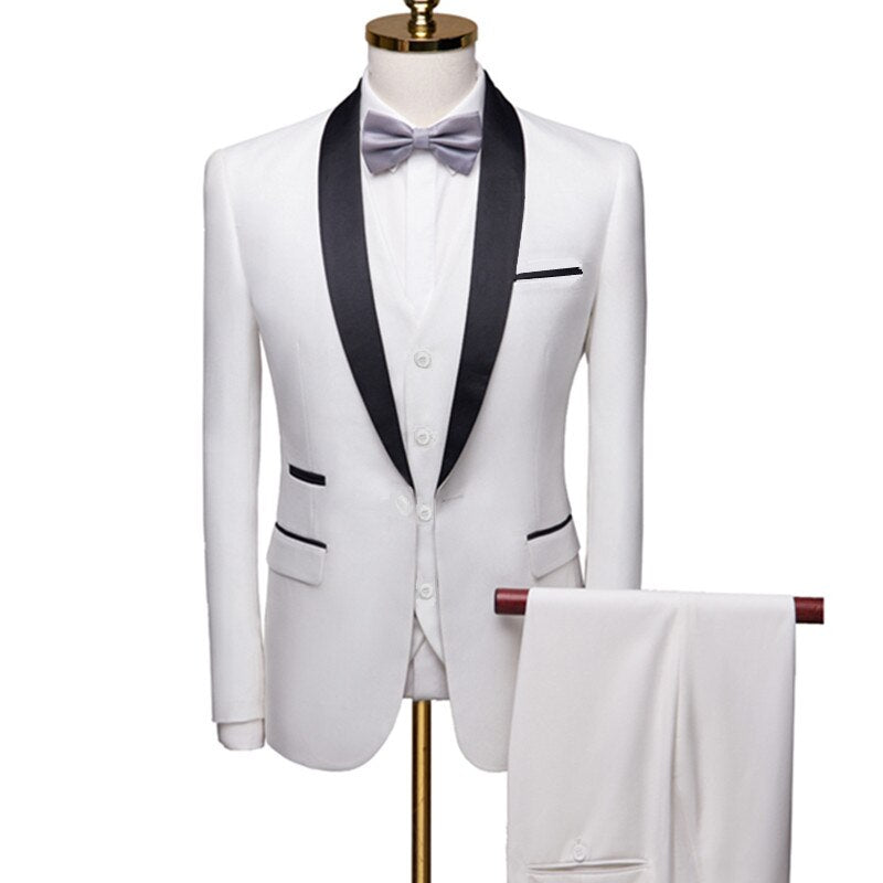 Men Business Casual Wedding Party Three Pieces Jacket Trousers Waistcoat Set Male Blazer Coat Pants Vest Fashion Slim Fit Suits