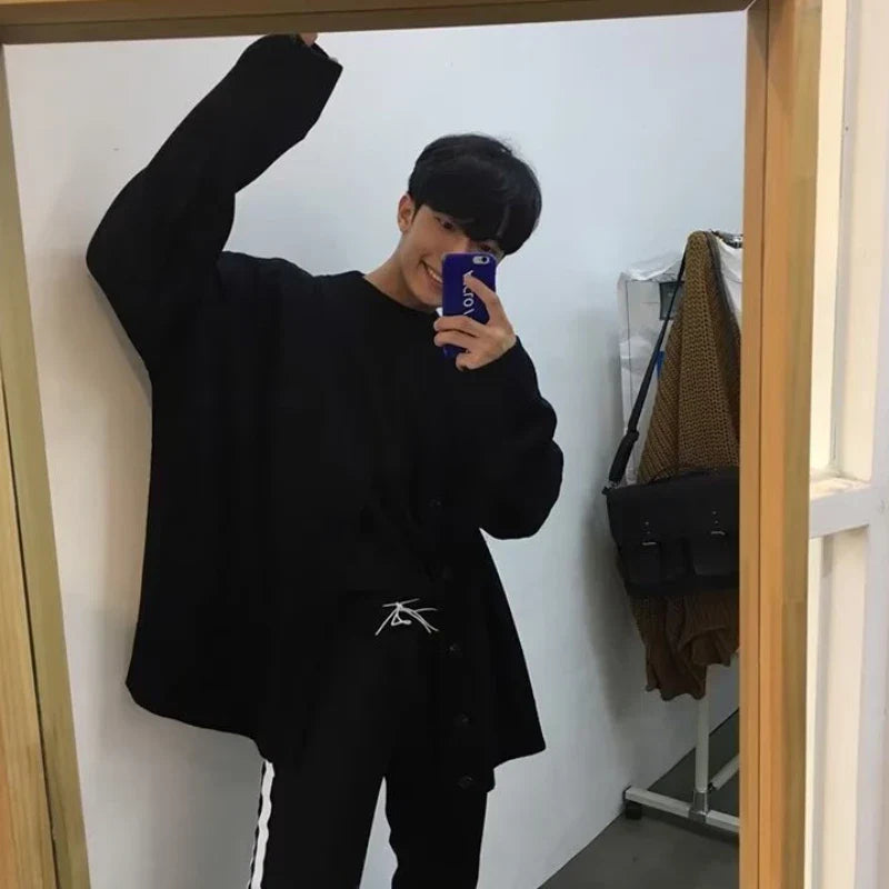 Men Cardigan Korean Style Temperament Pure Gentle Long Sleeve Baggy Knitwear Streetwear Leisure Handsome Cozy Minimalist Ins