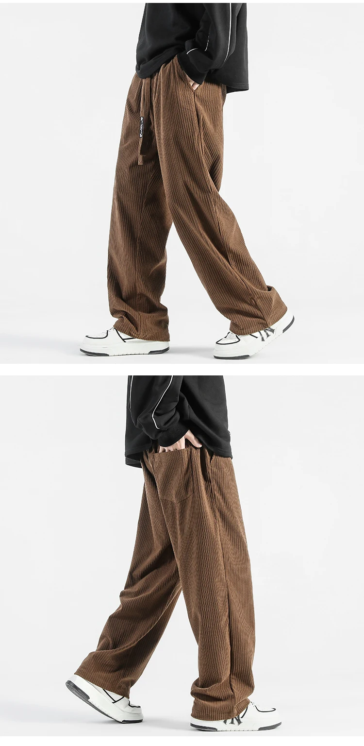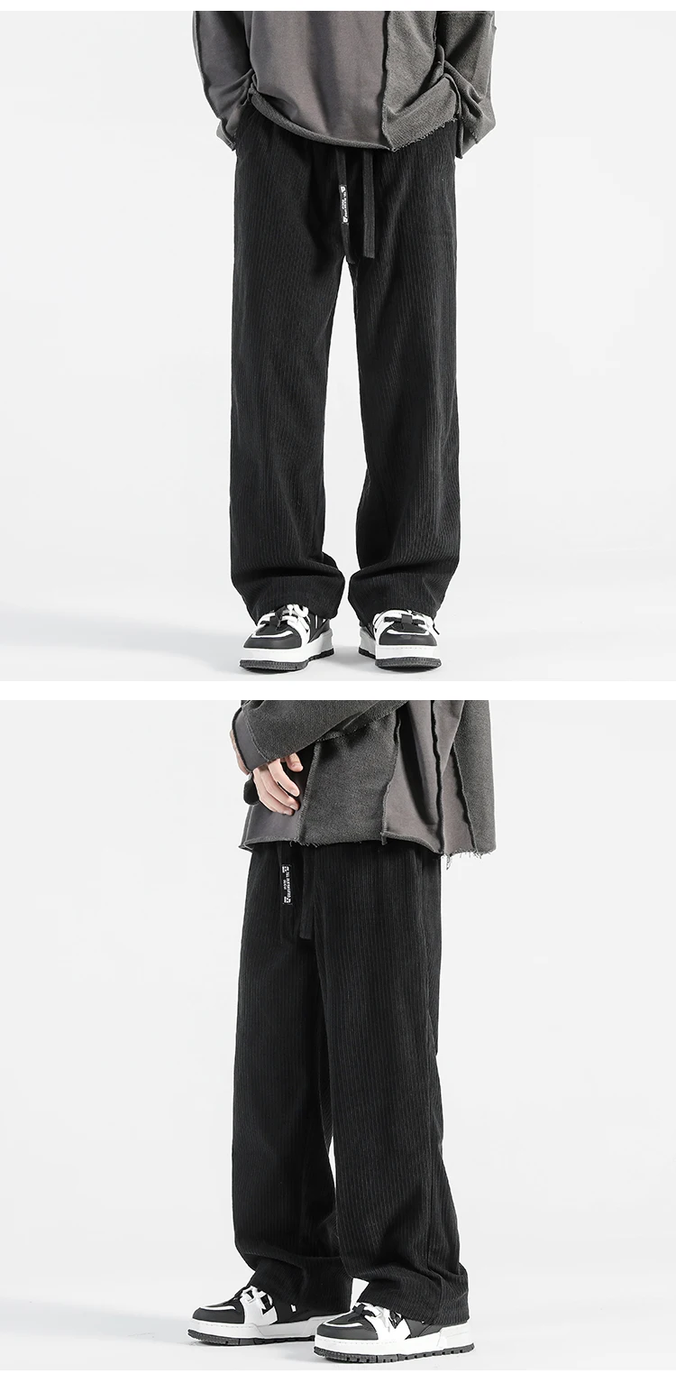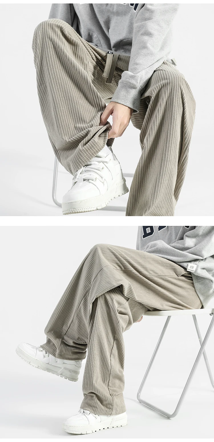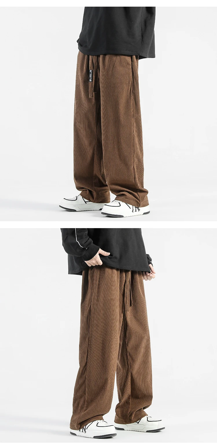 Men Casual Pants Vintage Casual Straight Pants Autumn Korean Fashion Wide Leg Trousers Men Street Corduroy Pantalones