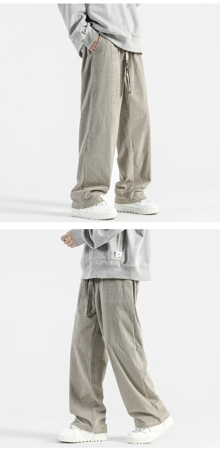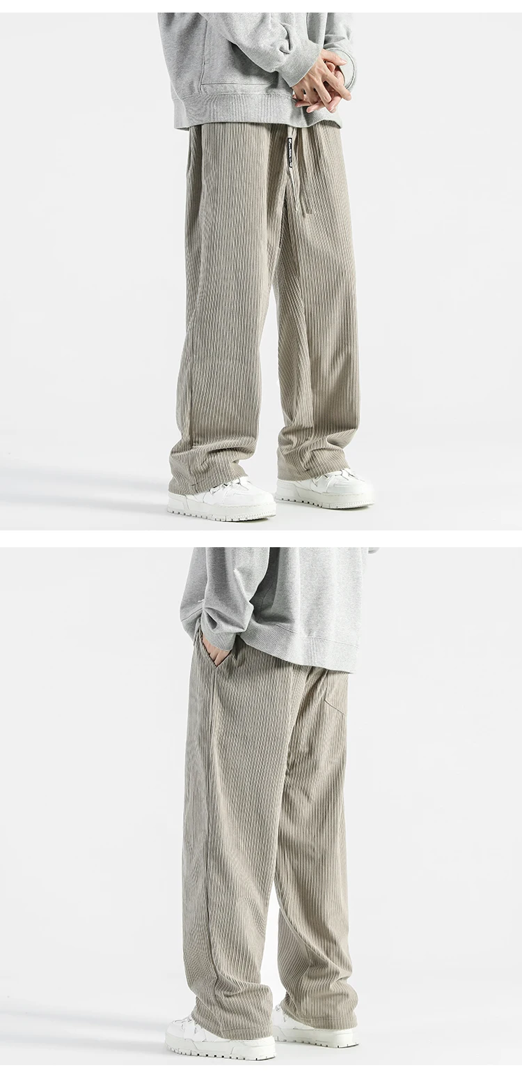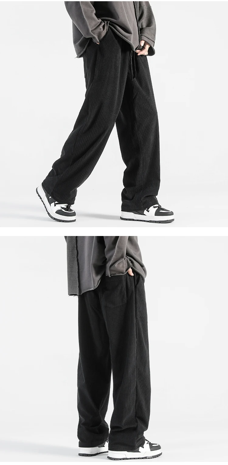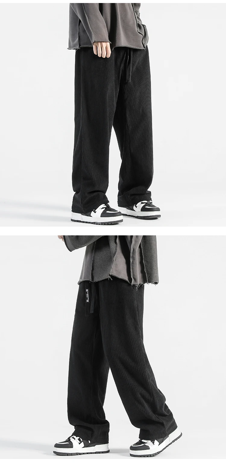 Men Casual Pants Vintage Casual Straight Pants Autumn Korean Fashion Wide Leg Trousers Men Street Corduroy Pantalones