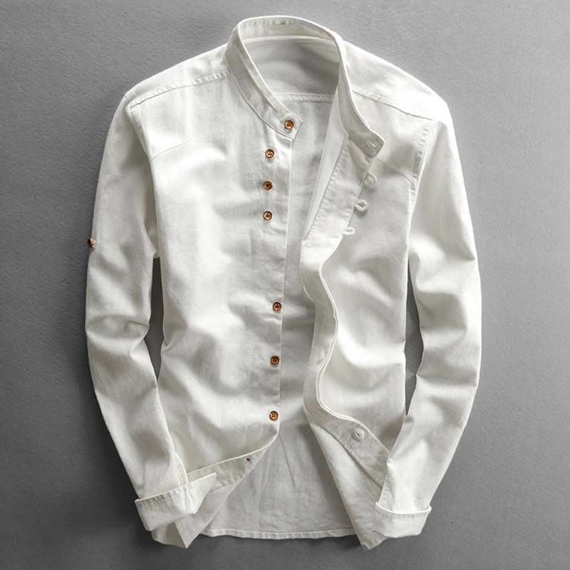 Men Cotton Linen Shirt Formal Retro Chinese Style Long Sleeve Mandarin Collar Casual Shirts Soft Comfort Clothing 7XL