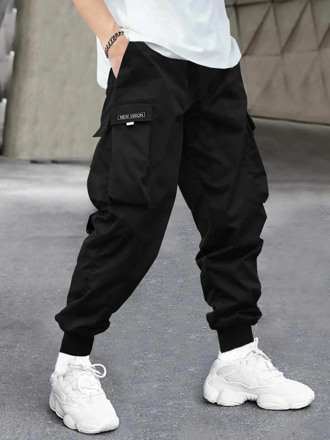 Men Flap Pocket Side Drawstring Waist Cargo Pants