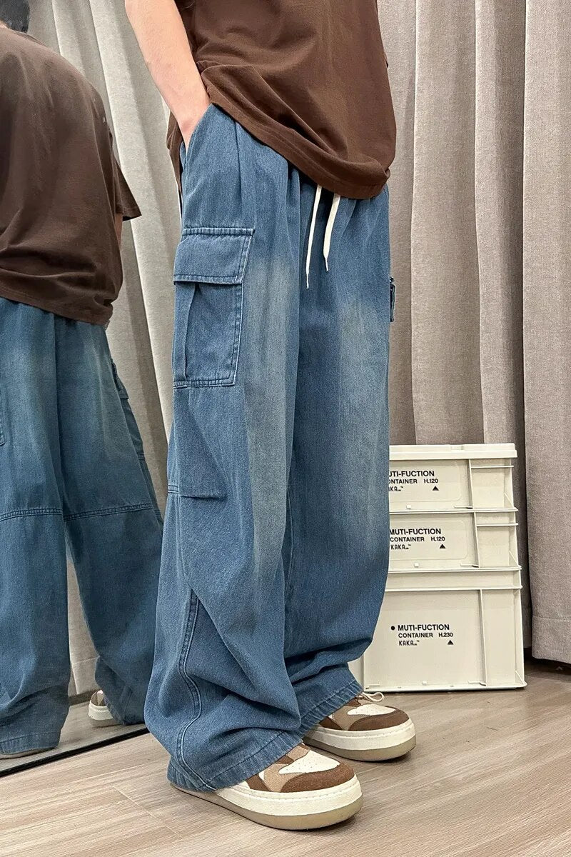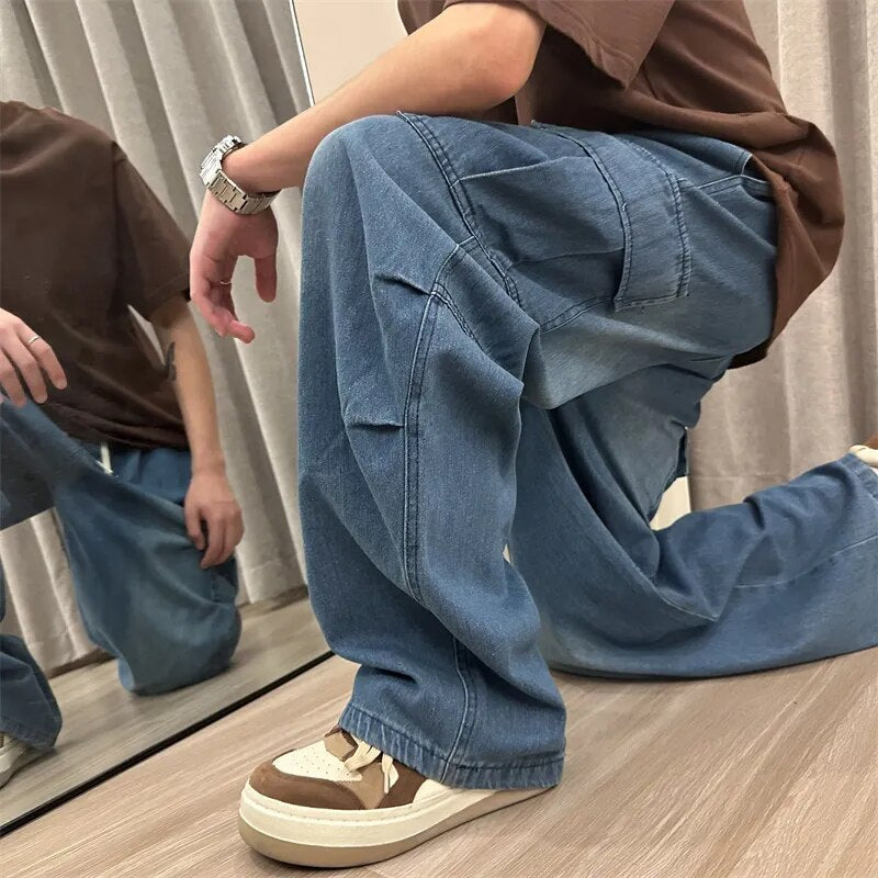 Men Jeans Loose Straight Wide Leg Denim Pants Men's Hip Hop Streetwear Skateboard Neutral denim Trousers Mopping Cargo jeans