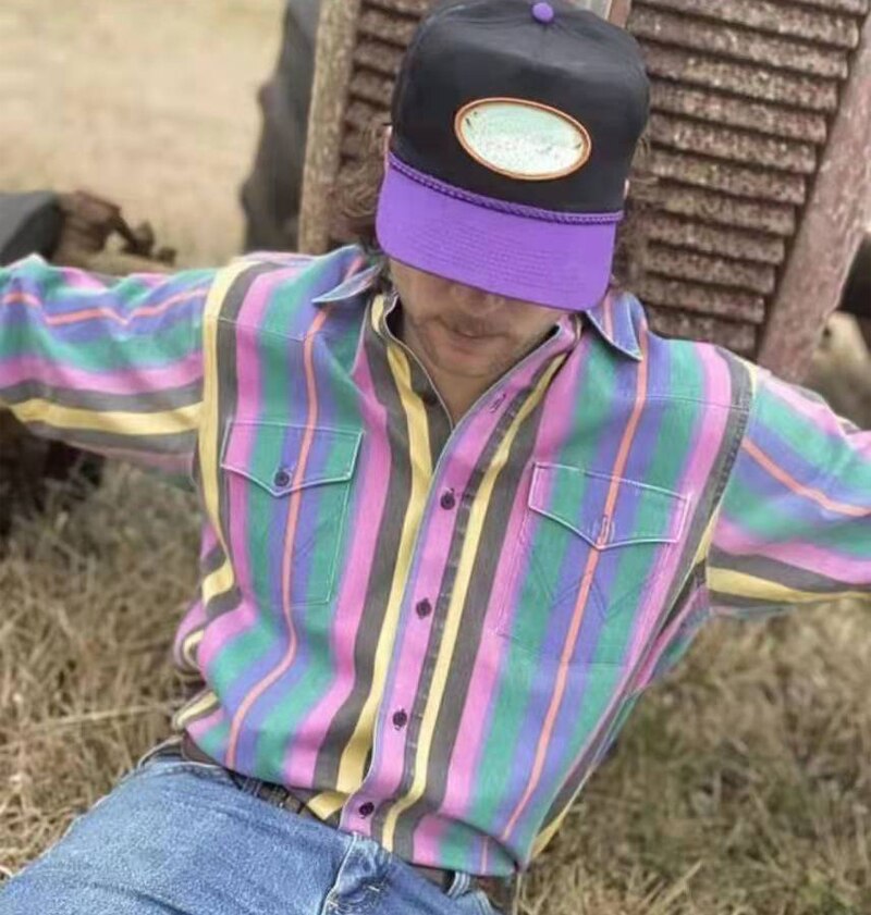 Men Long Sleeve Color Striped Shirt Dress Fashion Loose Button Shirts Turn-down Collar Blouse Men Hip-hop Streetwear Camisas
