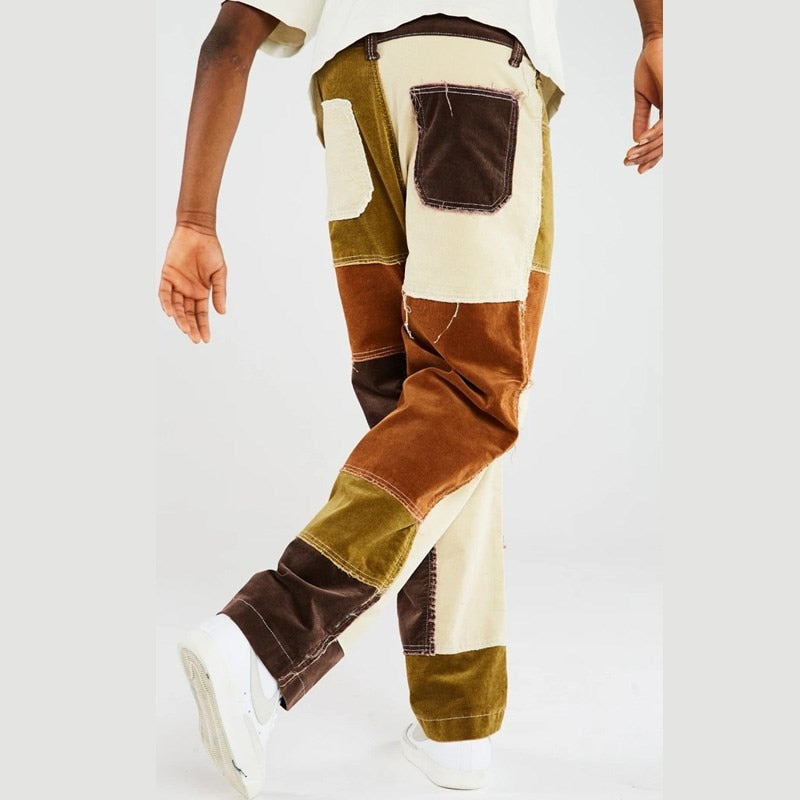 Men Wash Patch Design Jeans Hip Hop Harajuku Punk Style Splicing Straight Pants Denim Jeans Loose Street Cotton Tassel Trousers