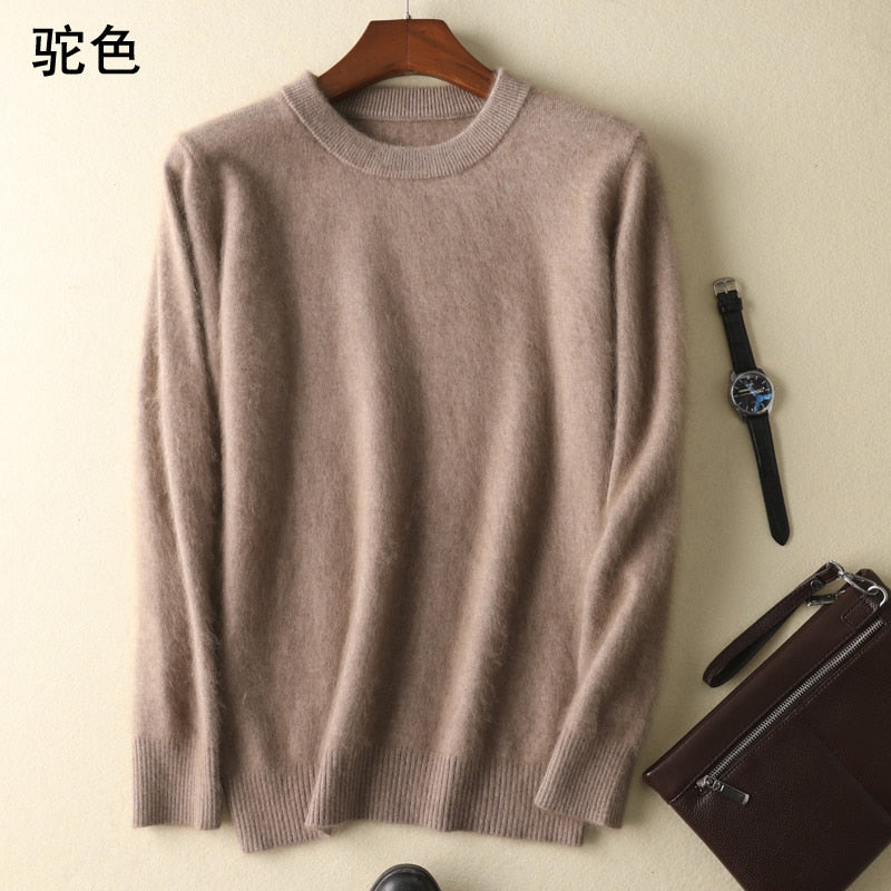 Men's 100% pure Mink Cashmere Sweater O-Neck Pullovers Knit Large Size Mink Sweater Winter New Tops Long Sleeve High-End Jumpers