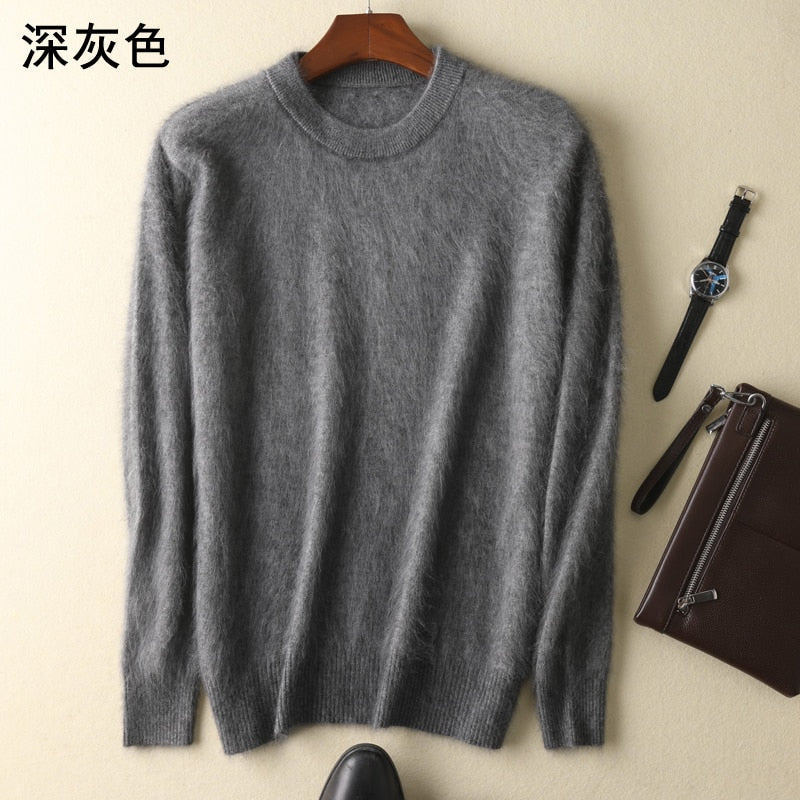 Men's 100% pure Mink Cashmere Sweater O-Neck Pullovers Knit Large Size Mink Sweater Winter New Tops Long Sleeve High-End Jumpers