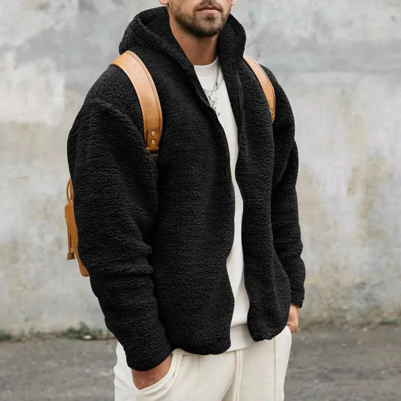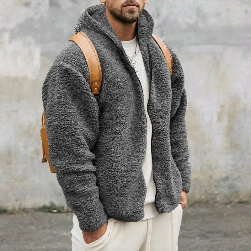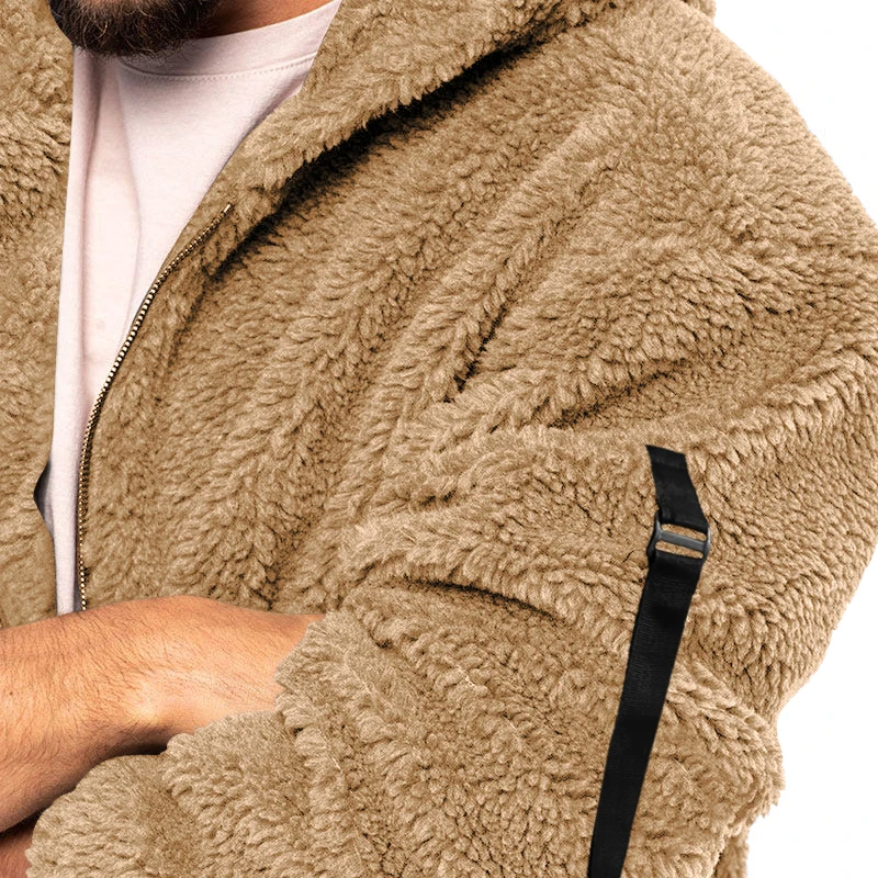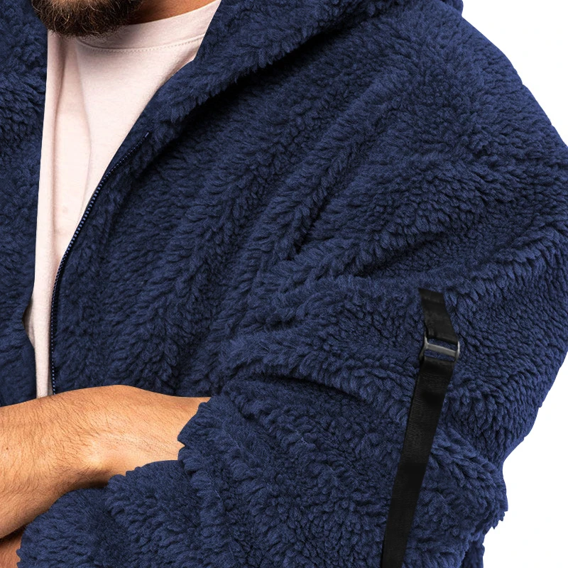 Men's Autumn and Winter Double sided Fleece Warm Jacket Loose Hooded Casual Coat