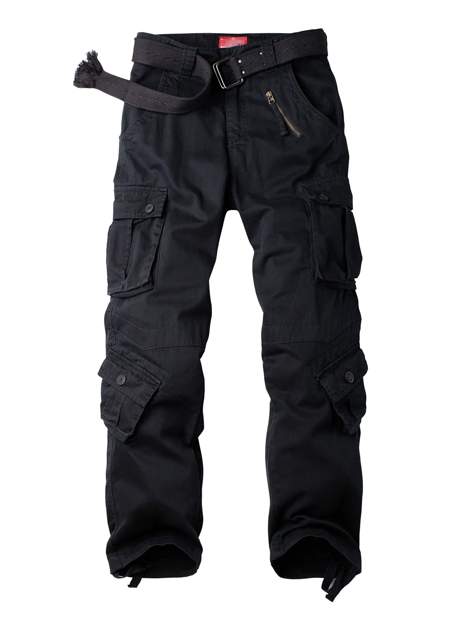 Men's Casual Cargo Pants Military Army Camo Pants Combat Work Pants with 8 Pockets(No Belt)