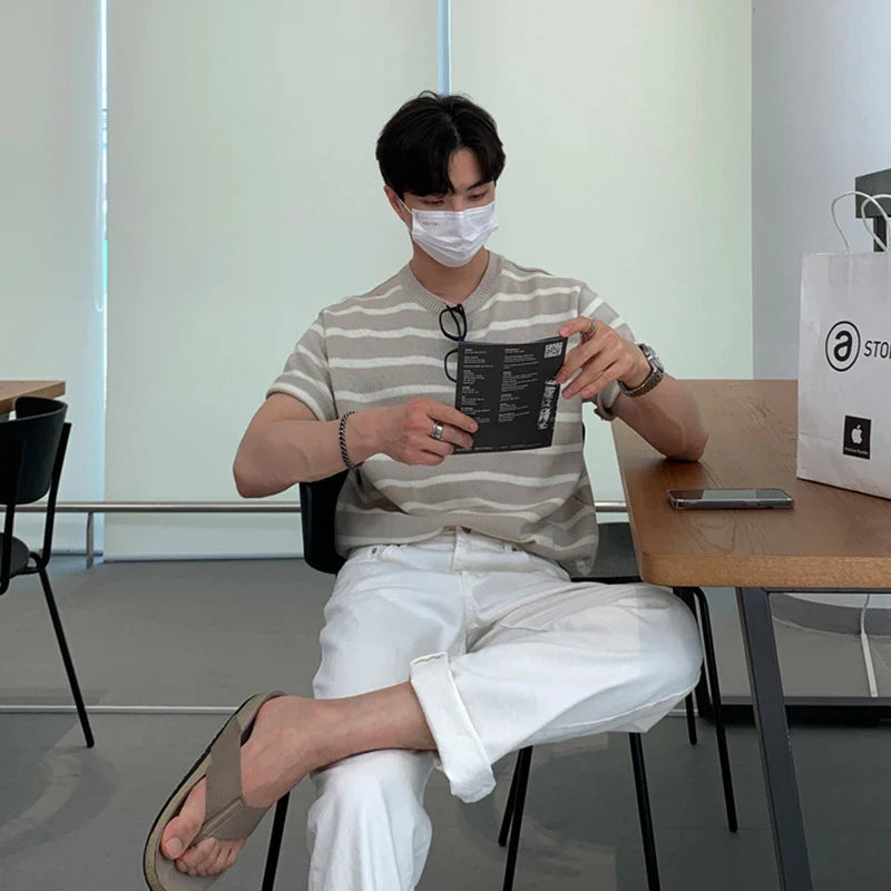 Type: Men's Clothing Leisure Luxury Knitted O Neck Striped T Shirt
