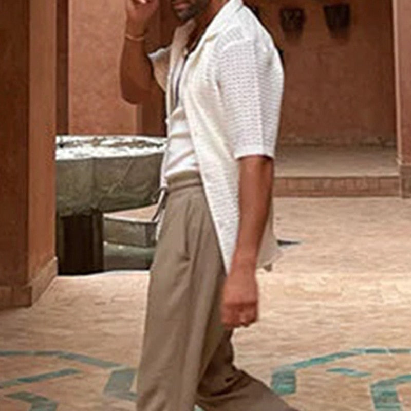 Men's Clothing Loose Lapel Button Tops Polo Shirts Fashion Short Sleeve Hollow Knit Shirts Men Summer Solid Blouse