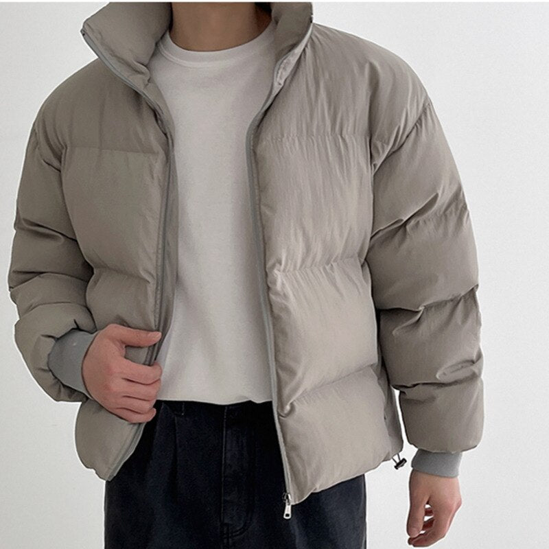 Men's Cotton Coat Winter Korean Fashion Loose Plush Thick Parka Coat Warm Zipper Solid Color Male Jacket