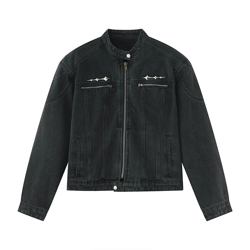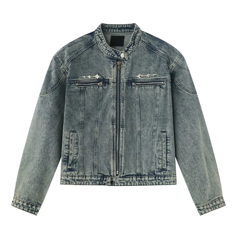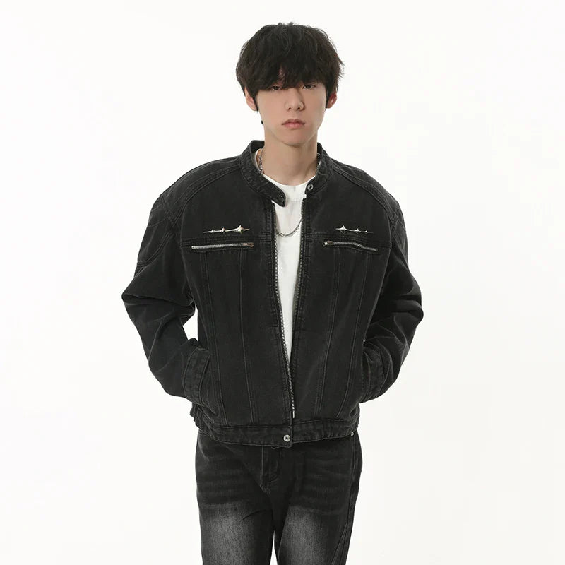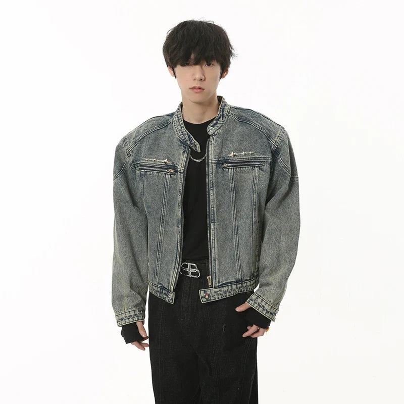 Men's Denim Coat Niche Metal Design Distressed Washed Jean Jacket Hip Hop Male Streetwear Zipper Casual Outerwear