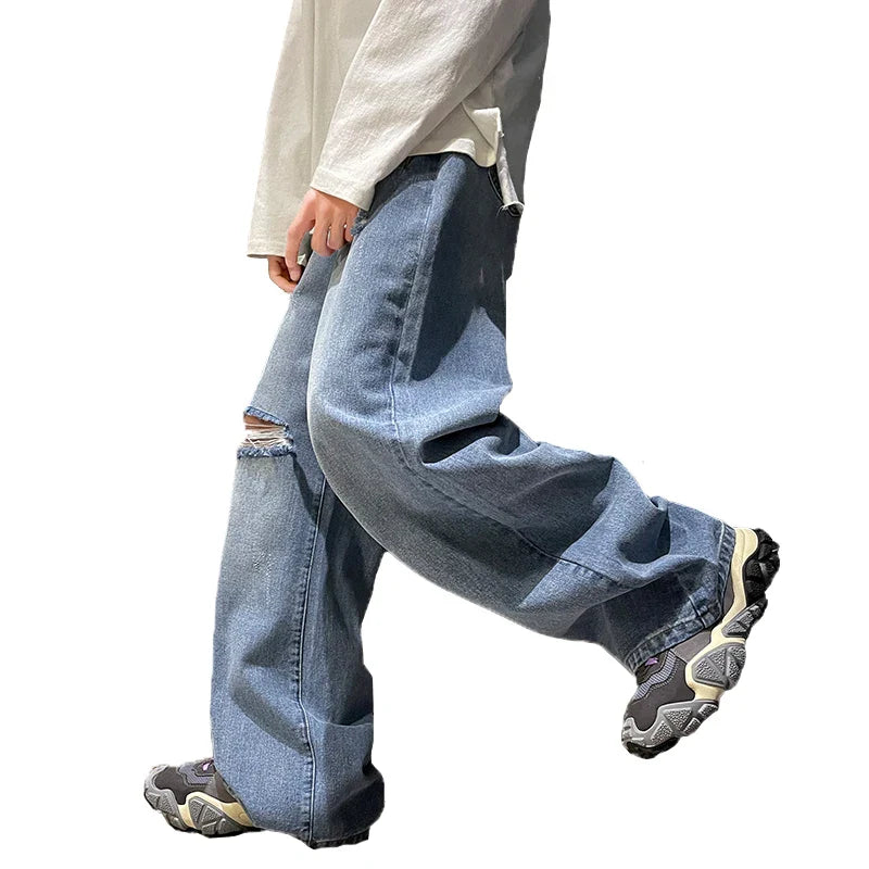 Men's Denim Pant Stretch Destroyed Ripped Design Fashion Hole Straight Jeans For Men Plus Size High Street Biker Jeans