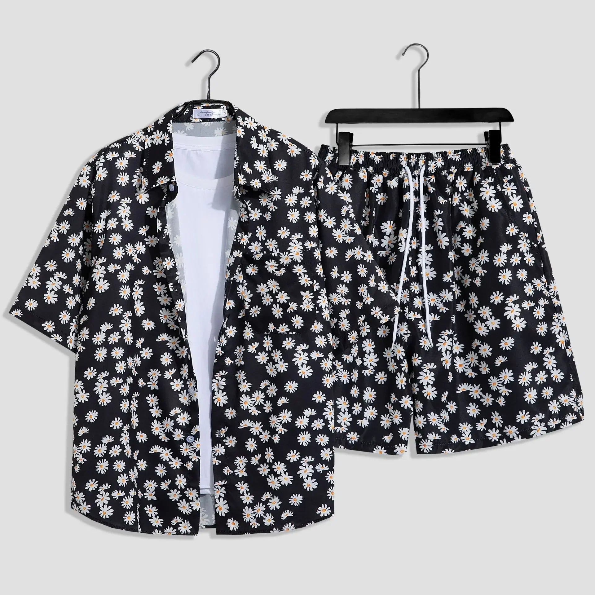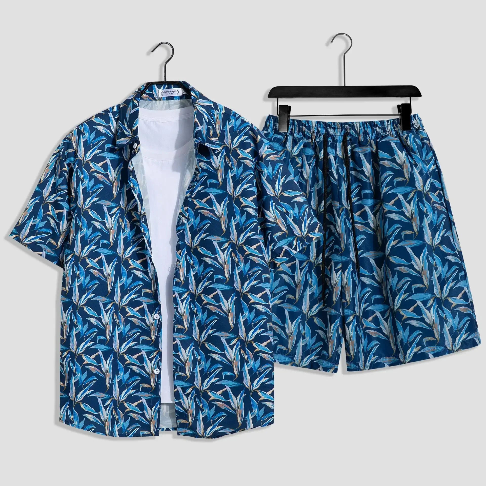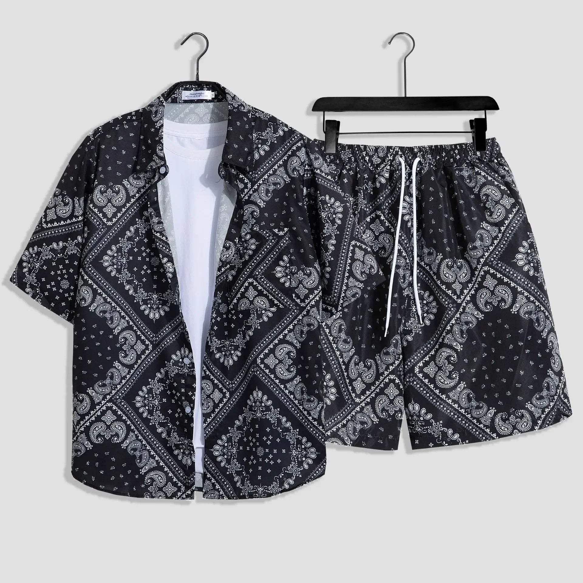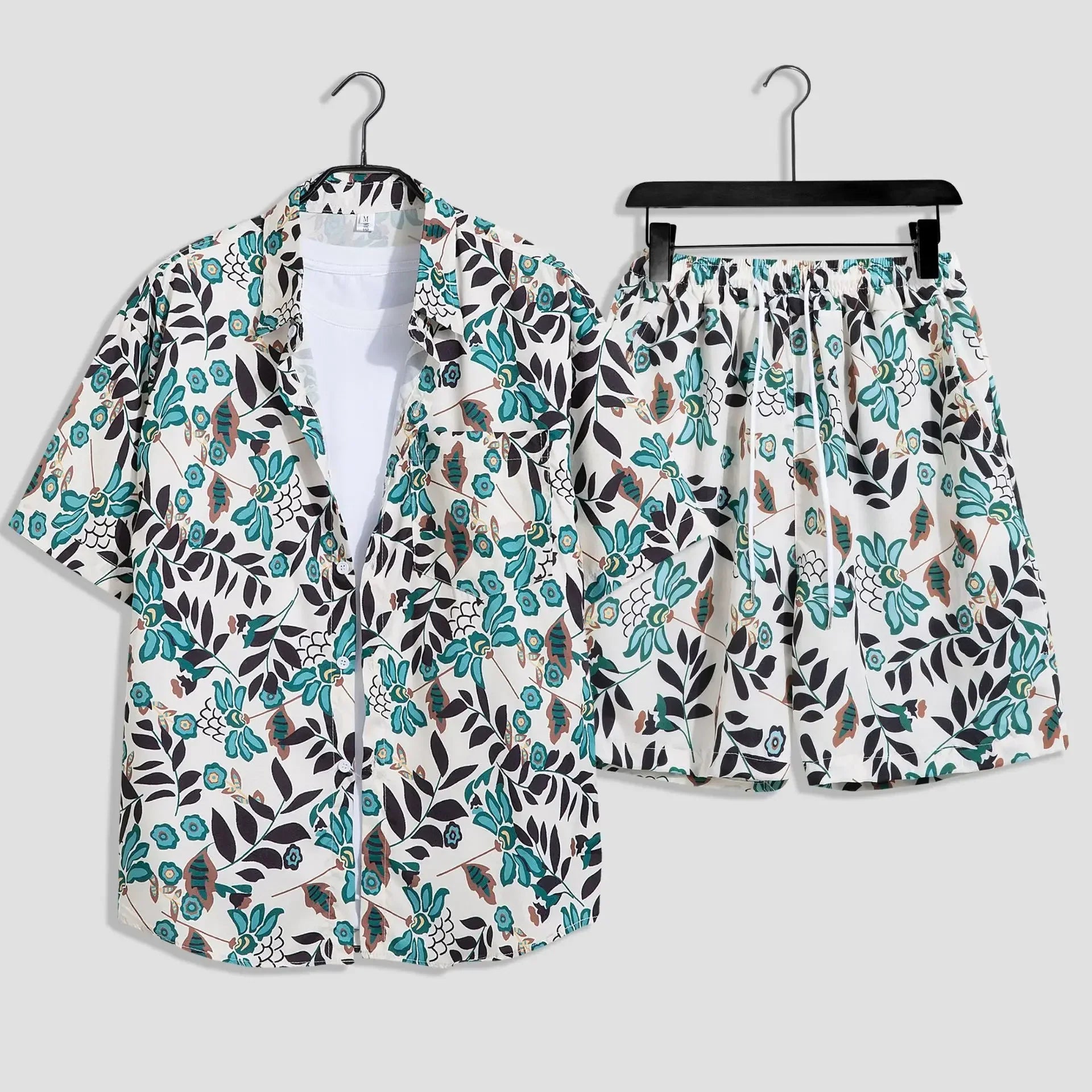 Mens Fashion Print Sets Short Sleeve Shirt+Shorts 2Pcs Suit Loose Summer Casual Beachwear Male Vacation Hawaiian Outfits