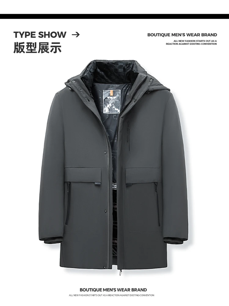 Mens Hooded Casual Outwear Long Parkas Men New Autumn Winter Warm Waterproof Parkas Jacket Coat 2 PIECES Winter Parkas