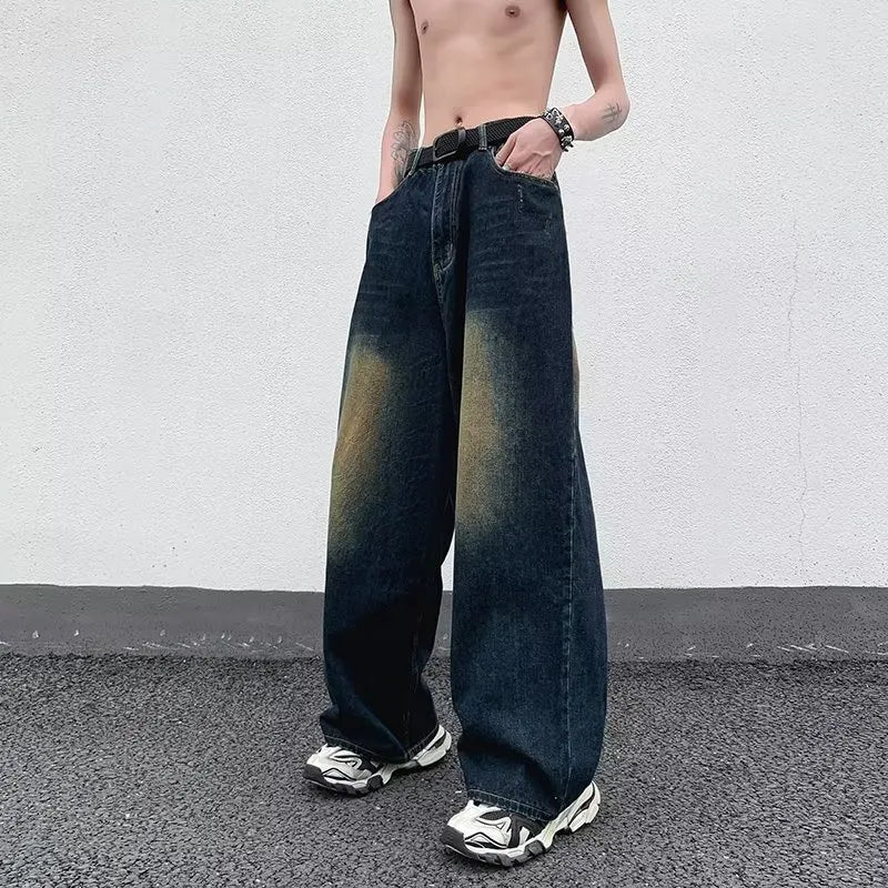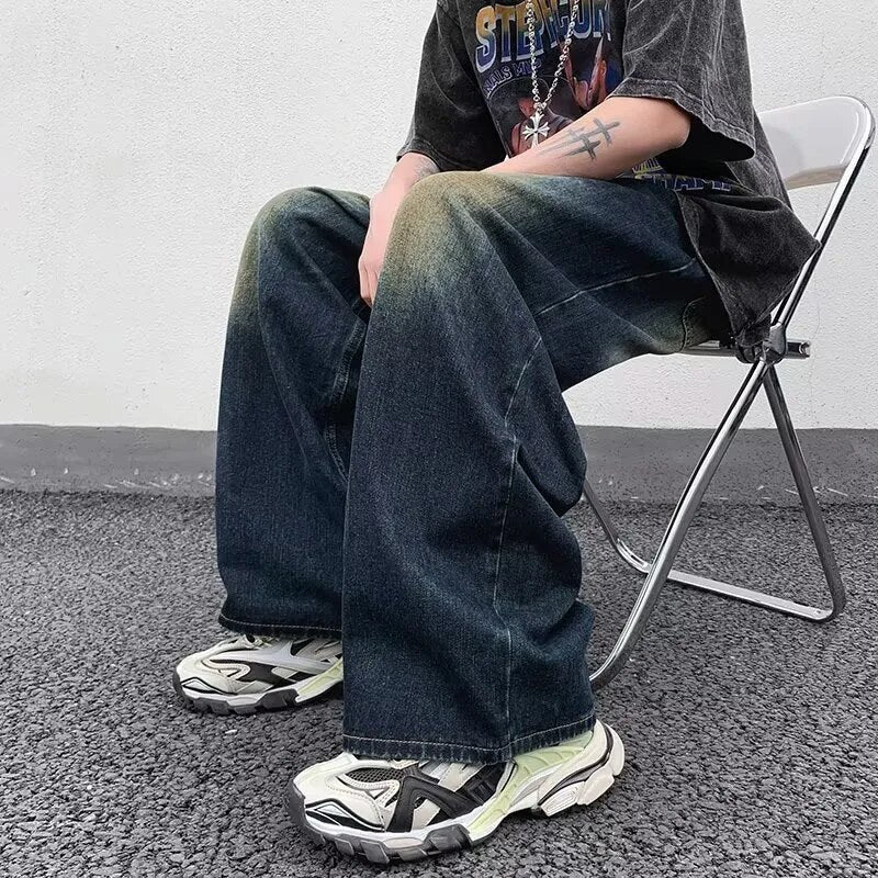 Men's Jeans Korean Version Student Handsome Casual Pants High Street Straight Loose Wide Leg Jeans Vintage Blue Baggy Jeans