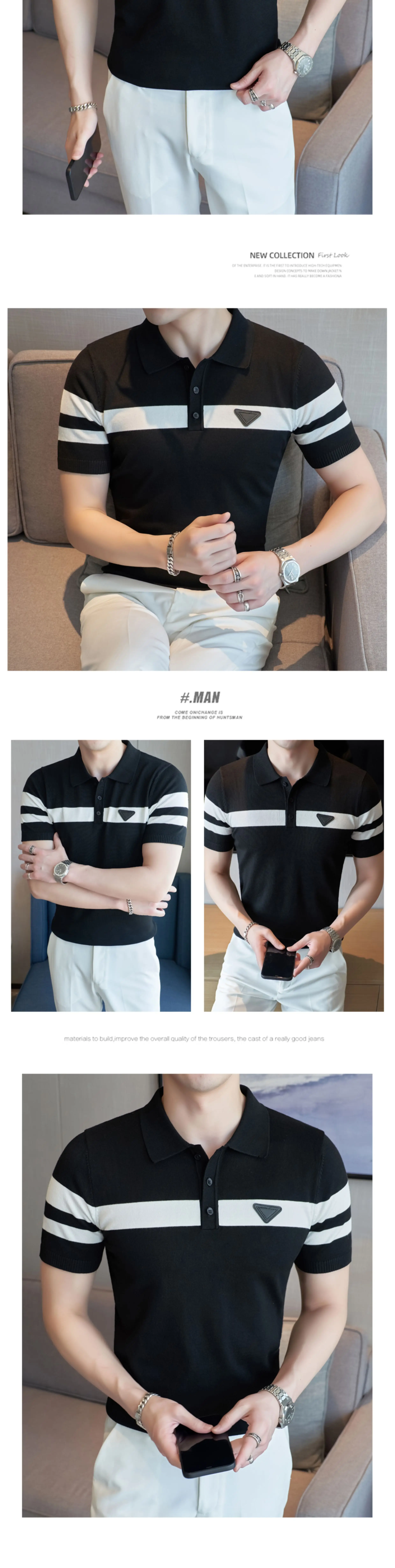 Men's Knitwear Short Sleeve Polo Shirt Casual Slim Lapel Button Cardigan Breathable Summer Polo Shirt Fashion Clothes 4XL