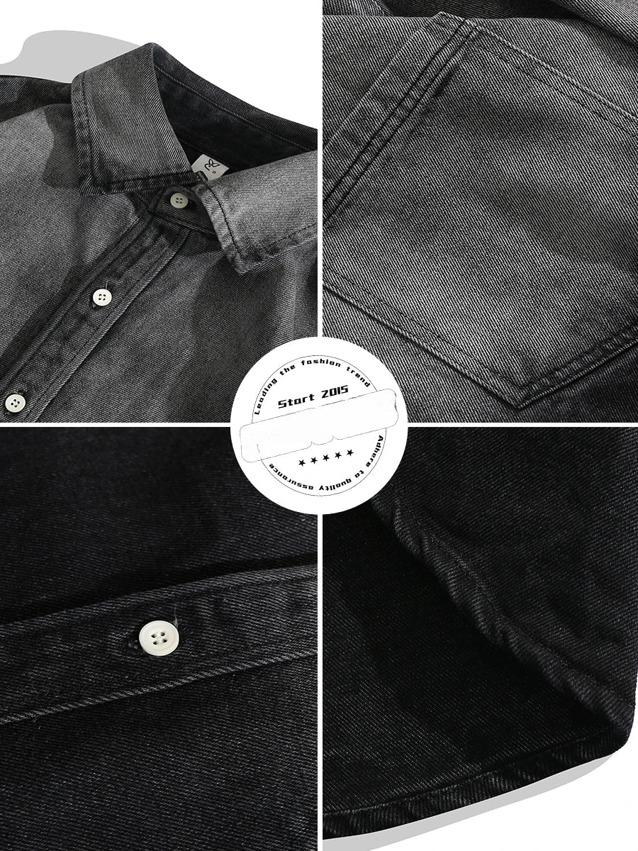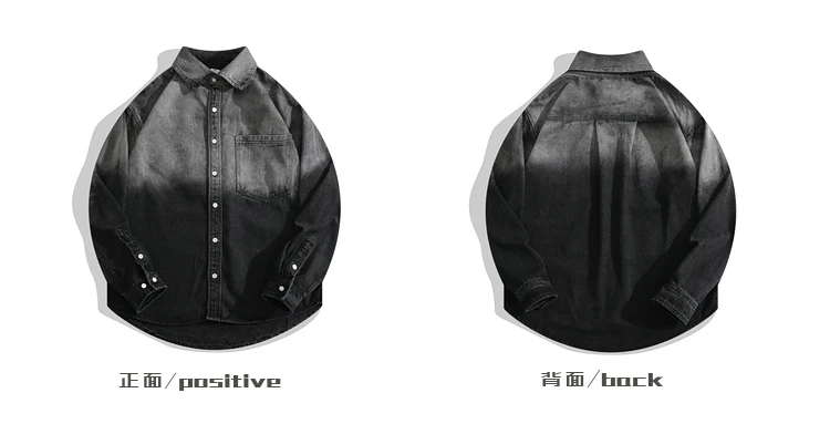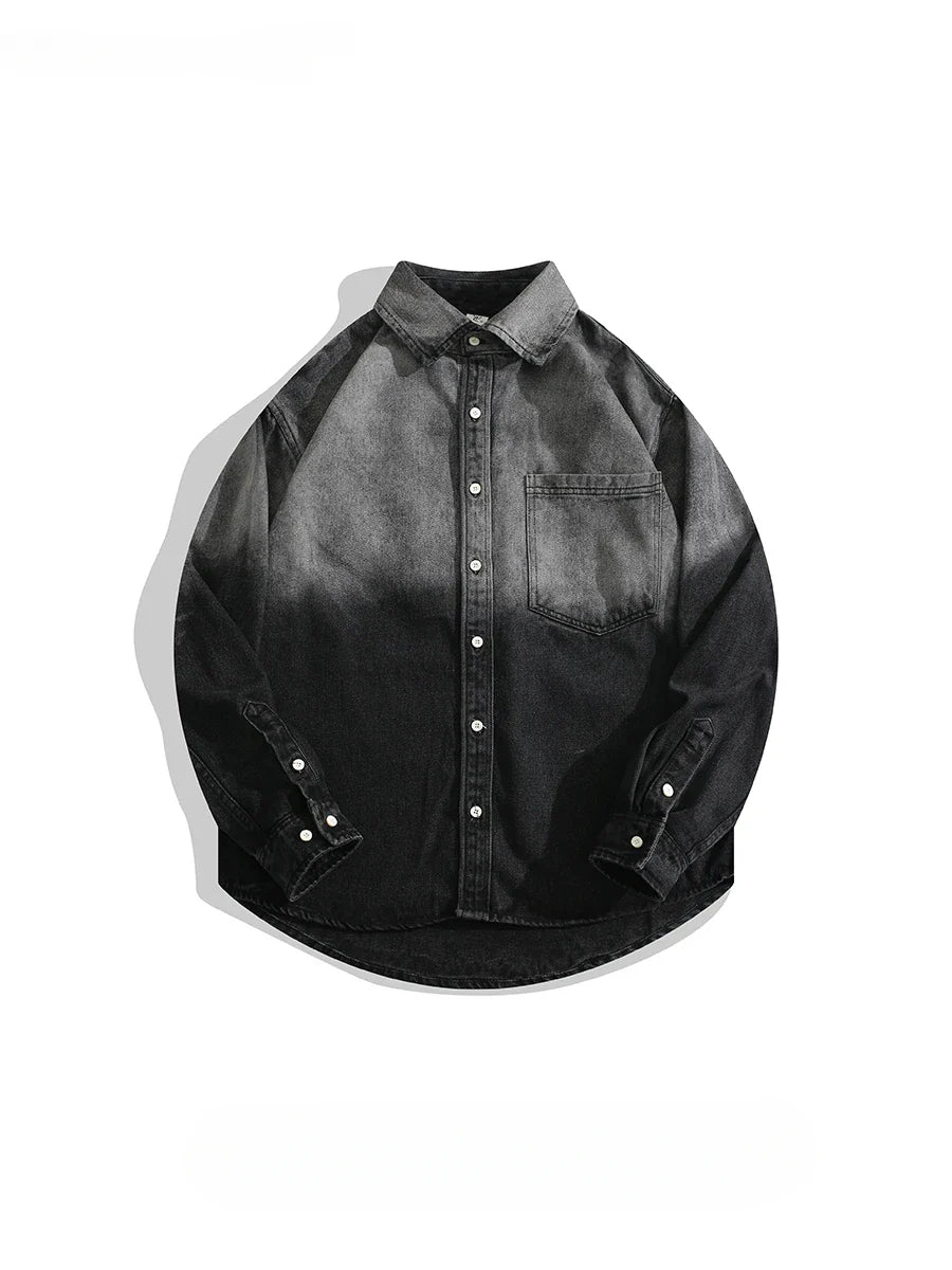 Men's Lapel Handsome Black Grey Gradient Denim Shirt Jacket Spring Autumn Trendy Street Casual Versatile Single-breasted Shirts