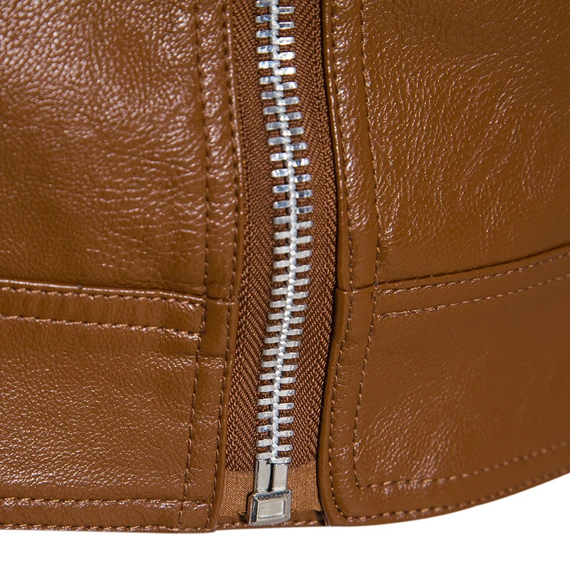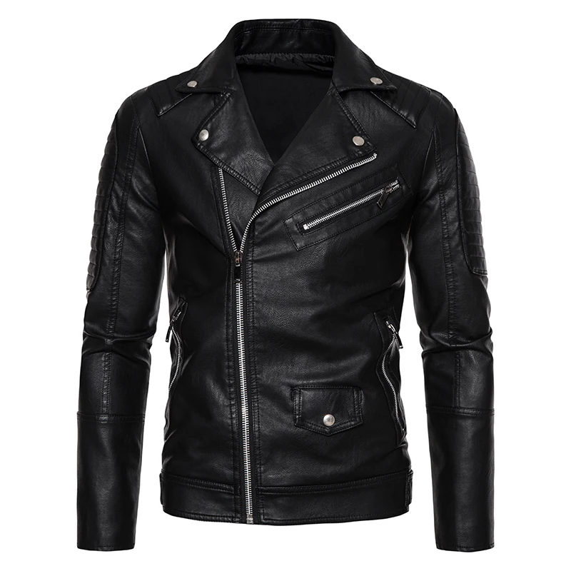 Mens Leather Jackets Solid Turn Down Collar Casual Slim Fit Motorcycle Pu Leather Jacket Men Multiple Pockets Zipper Coat