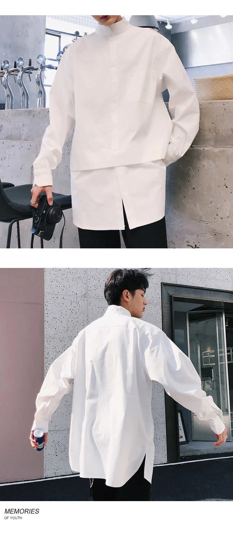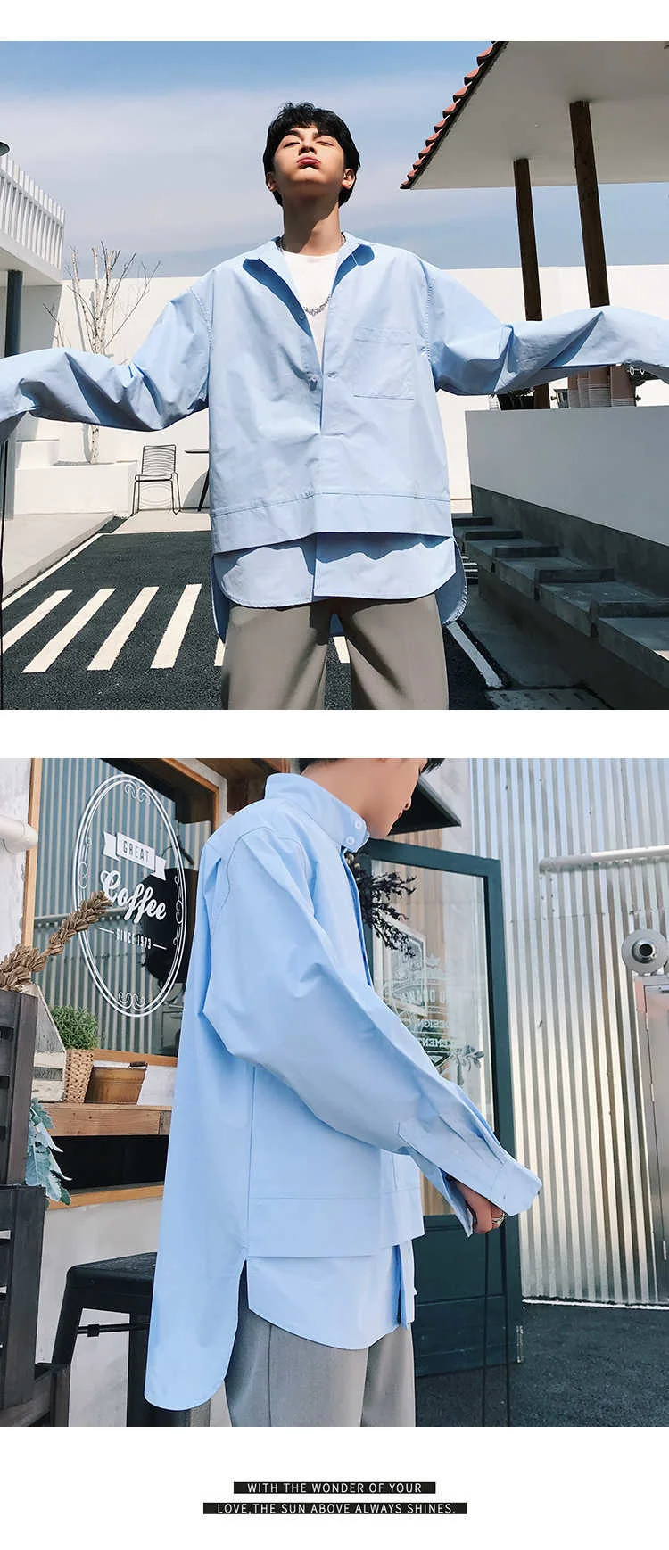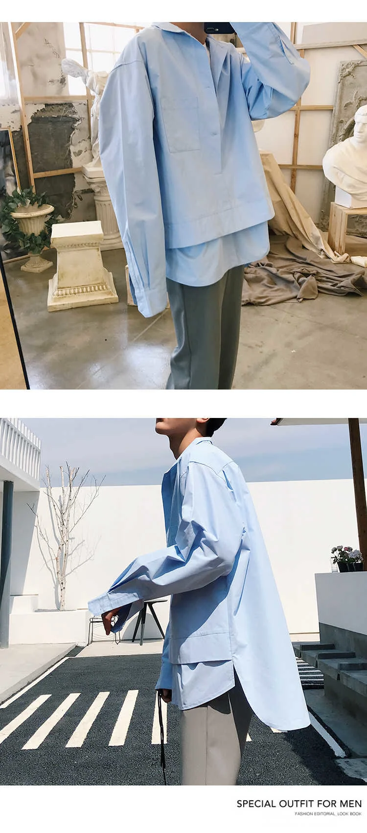 Men's Long Sleeve Shirts Tide Design Pullover Shirt For Male Trend False Two Pieces Folded Tops Loose Autumn