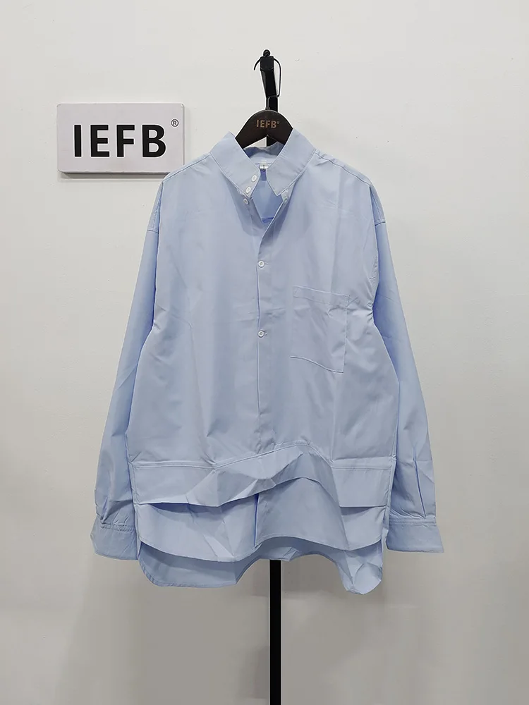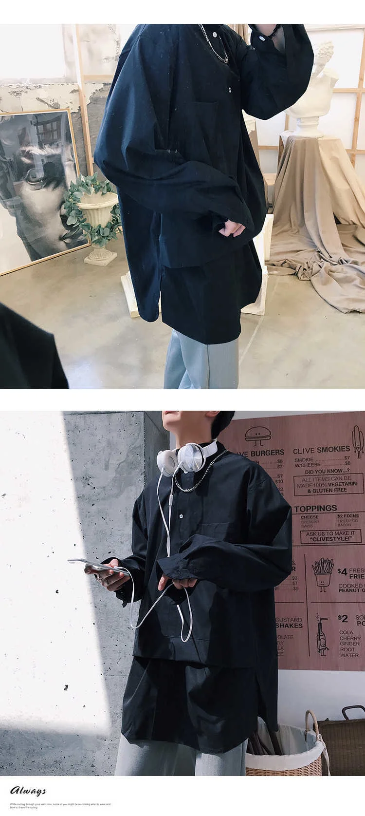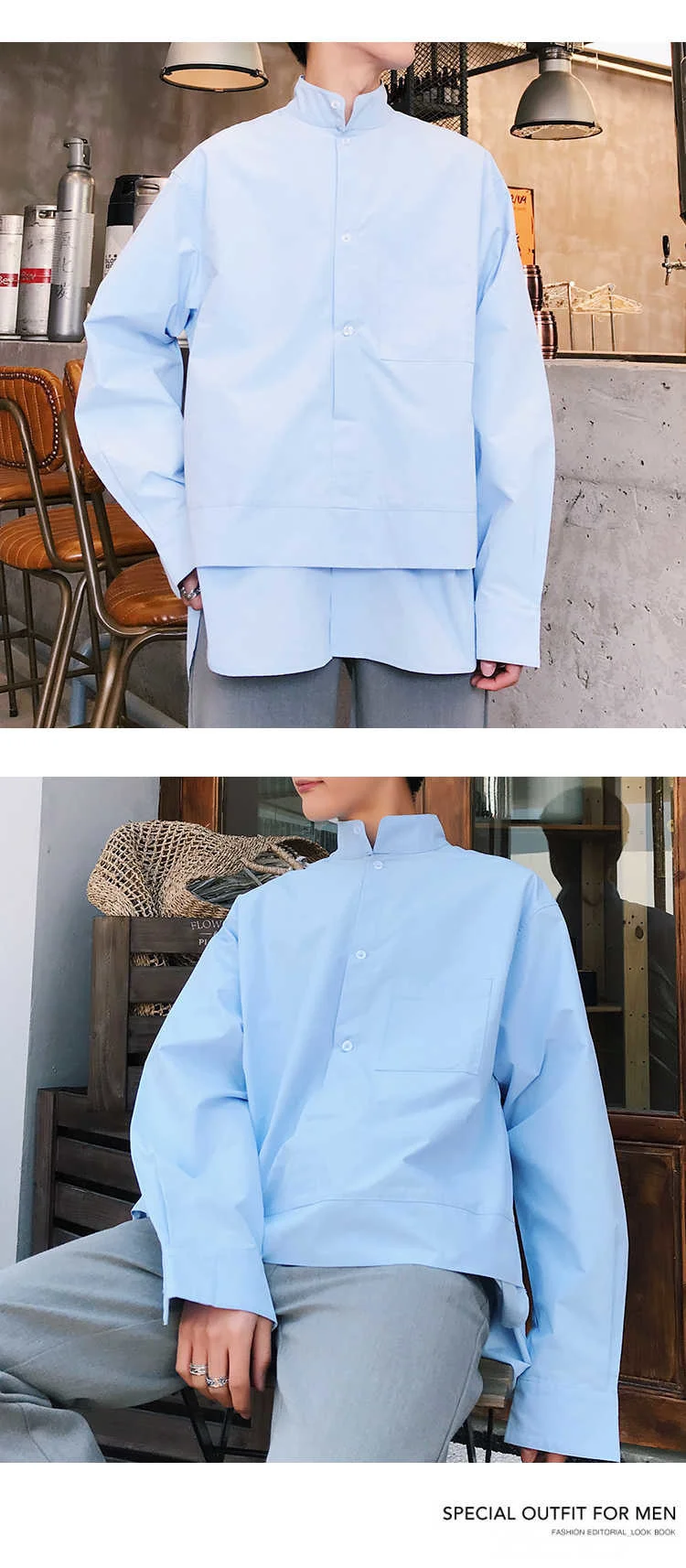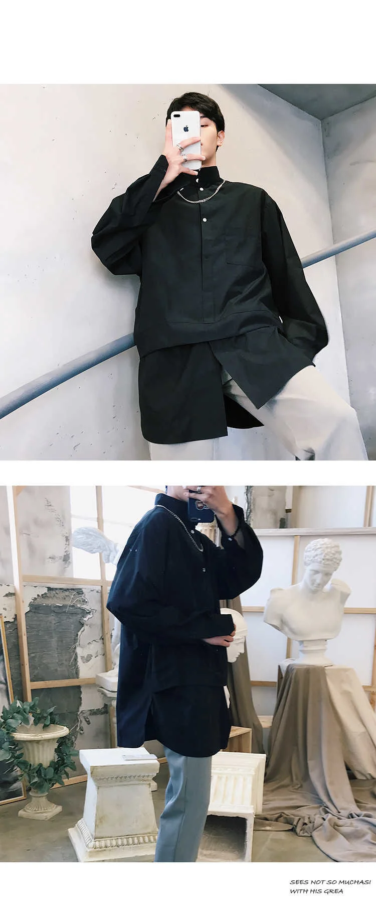 Men's Long Sleeve Shirts Tide Design Pullover Shirt For Male Trend False Two Pieces Folded Tops Loose Autumn