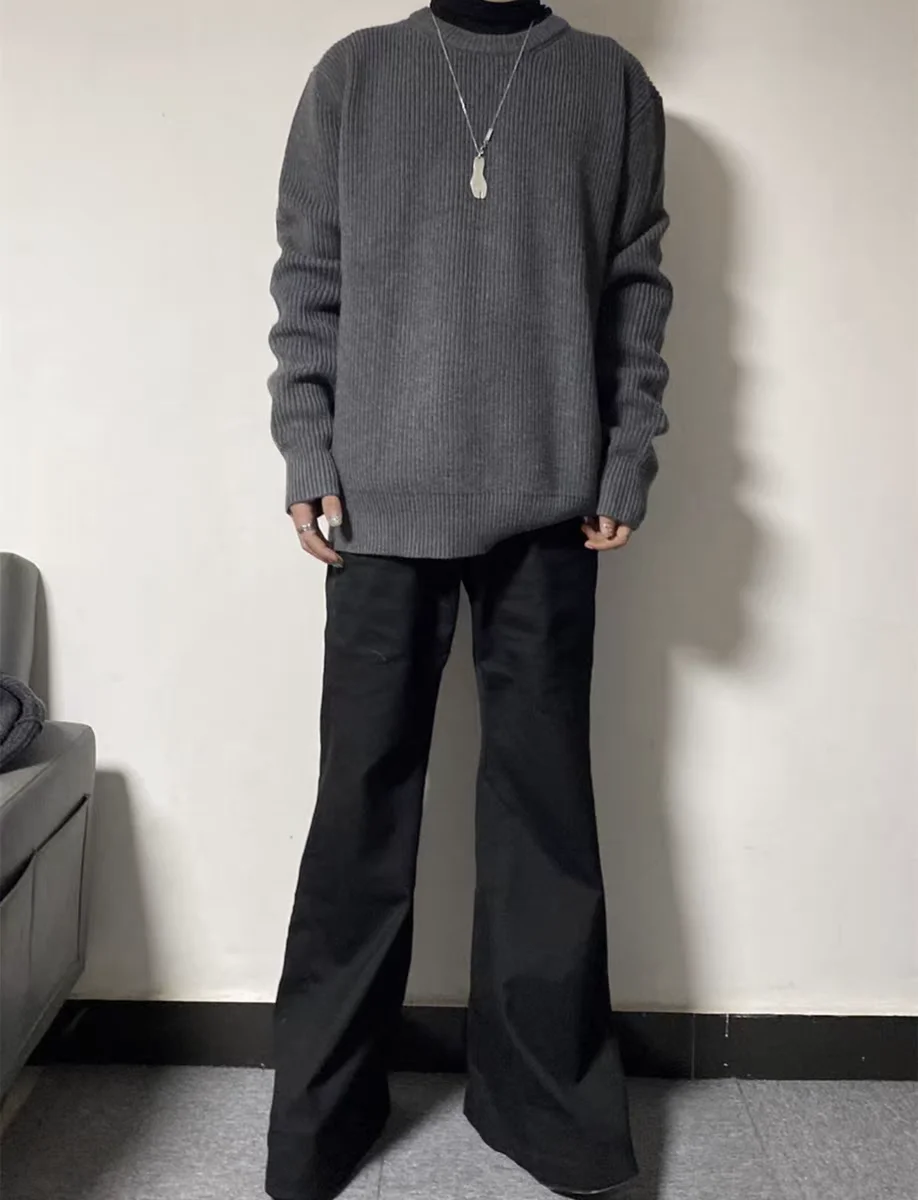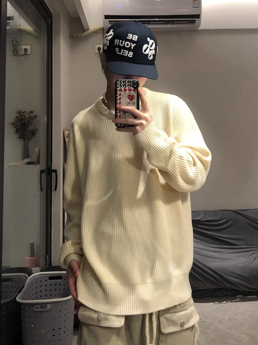 Men's Luxury Knitwear Sweater Loose High Quality Long Sleeve O-neck Knit Pullover Black Casual Y2k All-match Popular Jumper