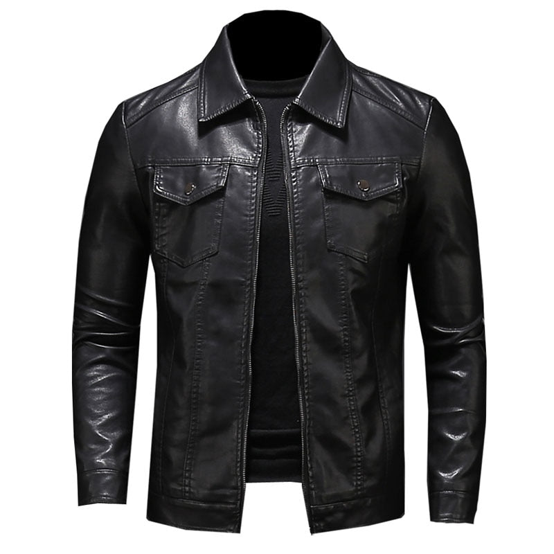 Men's Motorcycle Leather Jacket Large Size Pocket Black Zipper Lapel Slim Fit Male Spring and Autumn High Quality Pu Coat M-5Xl