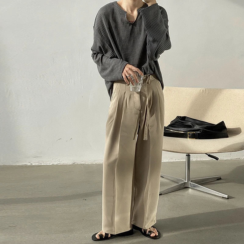 Men's Retro Loose Lazy Stylish Long Sleeve T-Shirt Casual O Neck Solid Exposed Clavicle Tops Breathable Basic Shirt New