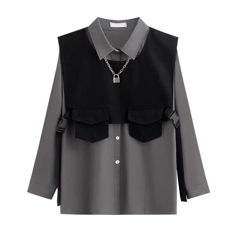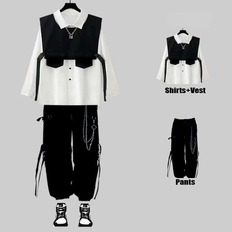 Men's Sets Black Cargo Pants Men's Shirt Kit Long Sleeve Shirts Korean Streetwear Hip Hop Harajuku Spring