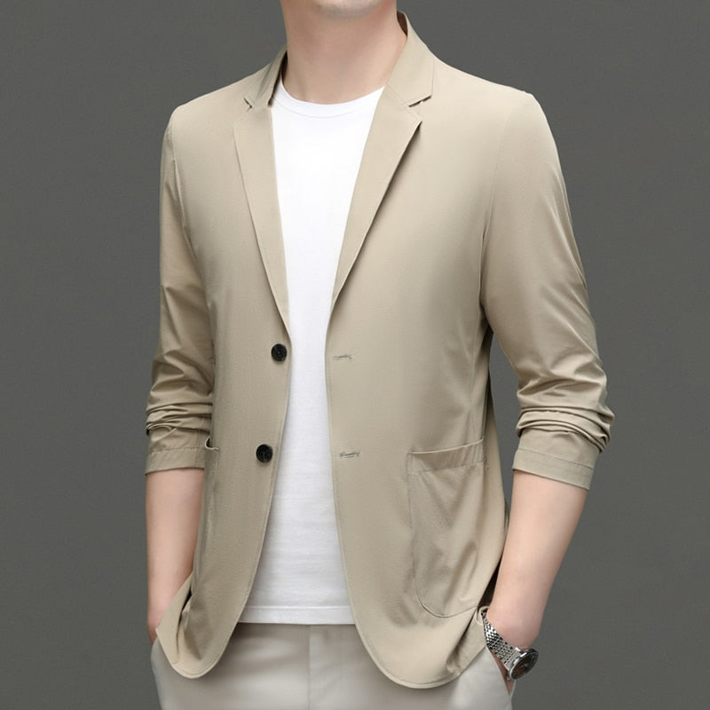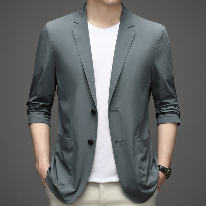 Men's Suit Jacket Summer Ultra-Thin Breathable High Elastic Lightweight Ice Silk Sun Protection Casual Suit Jacket Men