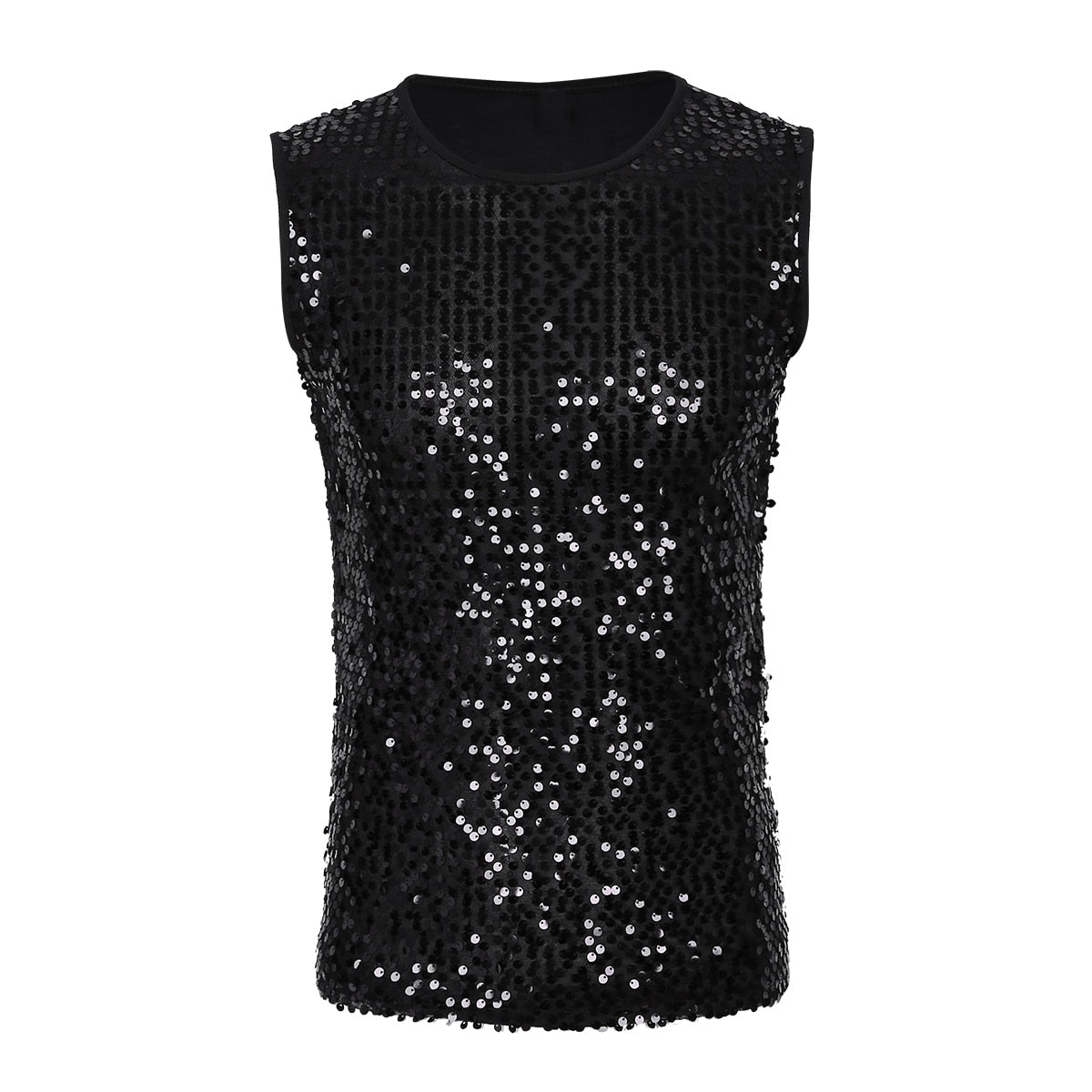 Mens Tank Tops Summer Sleeveless Crew Neck Sequin Slim Fitted Vest Tank Top Tee T-shirts Festival Rave Party Clubwear