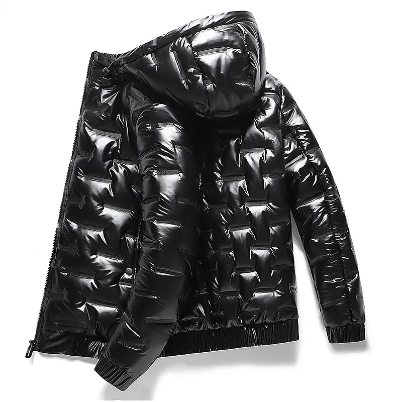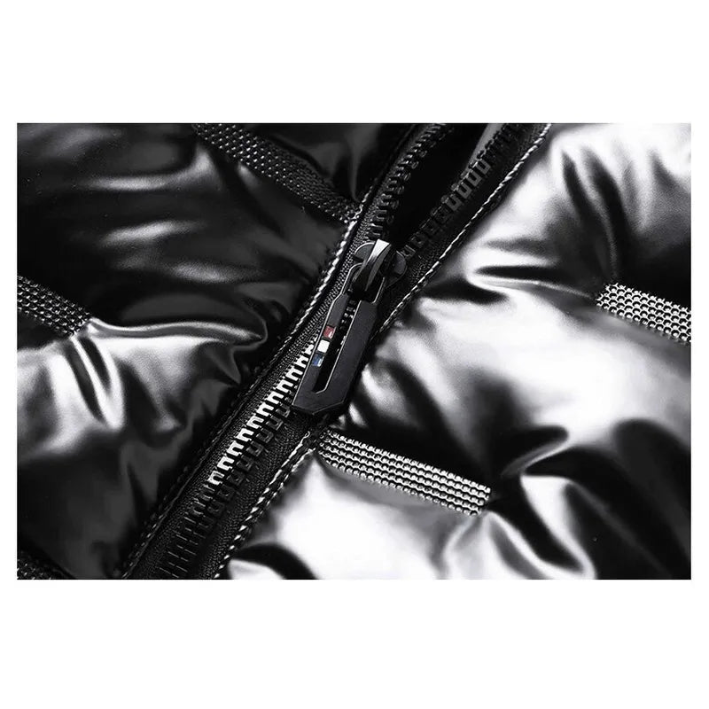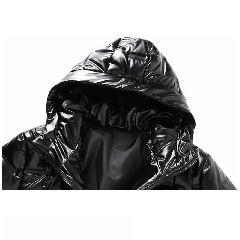 Mens Thick Warm Glossy Black Jackets Outwear Men's Clothings Winter Hooded Parkas Men Windbreaker Fashion Thermal Coats