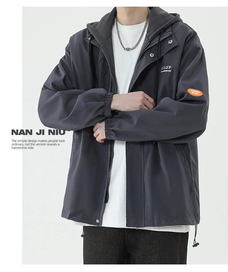 Men's Windbreaker Jacket With Hood Streetwear Outdoor Jackets Men Hip Hop Japan Style Harajuku Hoodies Jackets Men