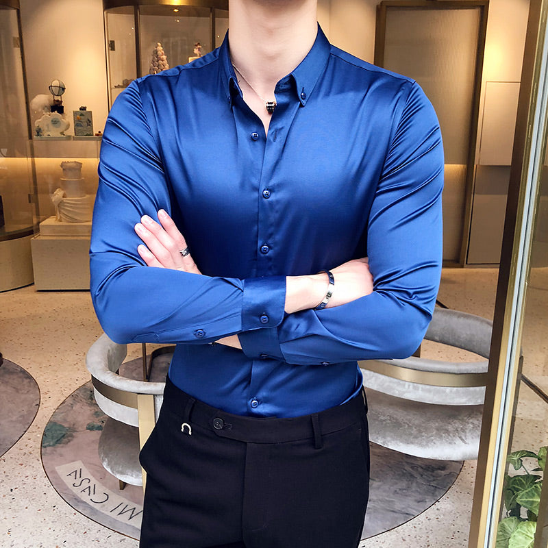 Neckline Embroidery Mens Shirts Long Sleeve Casual Slim Fit Men Dress Shirts Solid Color Formal Business Social Clothing Blouse